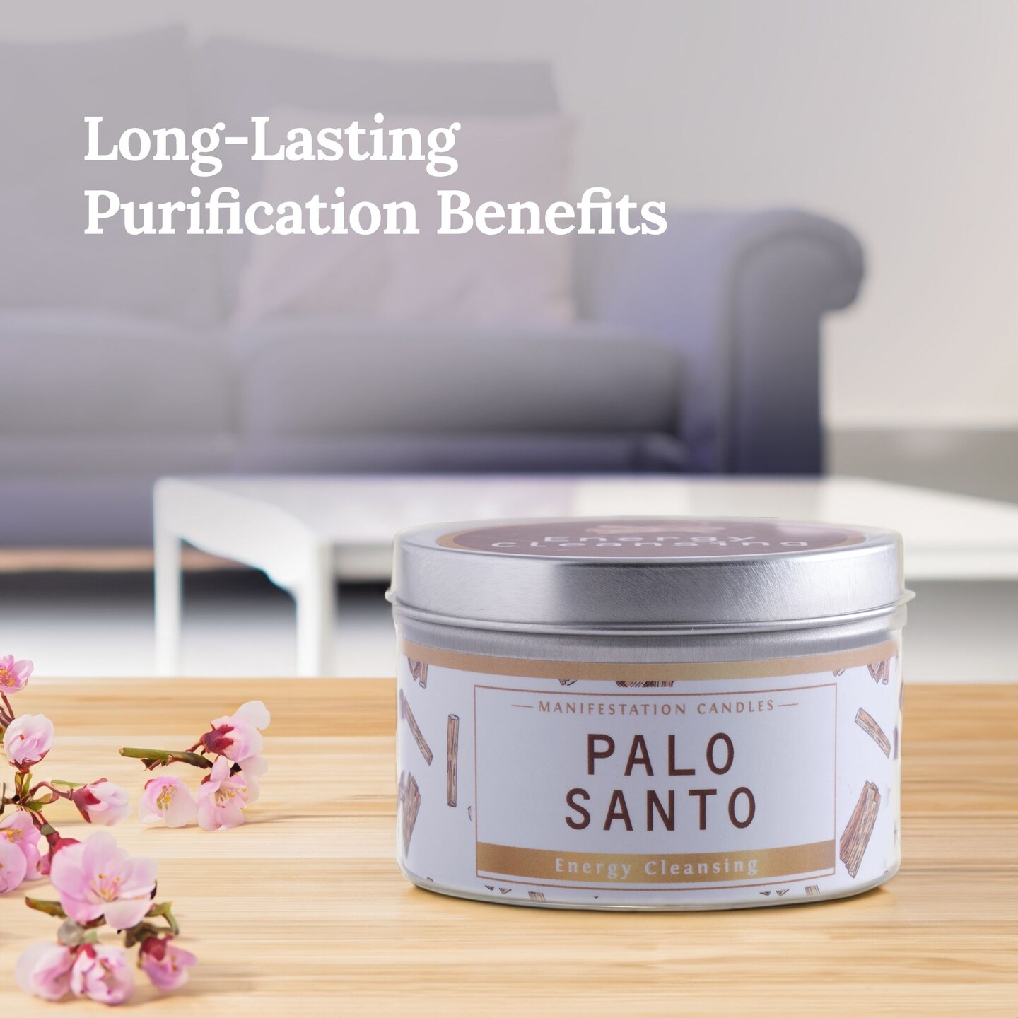 Long Lasting Palo Santo Scented Candle - 6 oz - 35 Hour Burn - Natural Soy Wax Smudge for House Energy Cleansing, Positive Vibes & Manifestation