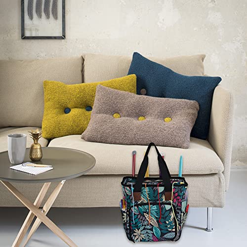 Looen Yarn Knitting Storage Tote-Large Capacity Crochet Organizer Portable Travel Bag with Shoulder Strap Crochet Hooks Case for Unfinished Bulk Project