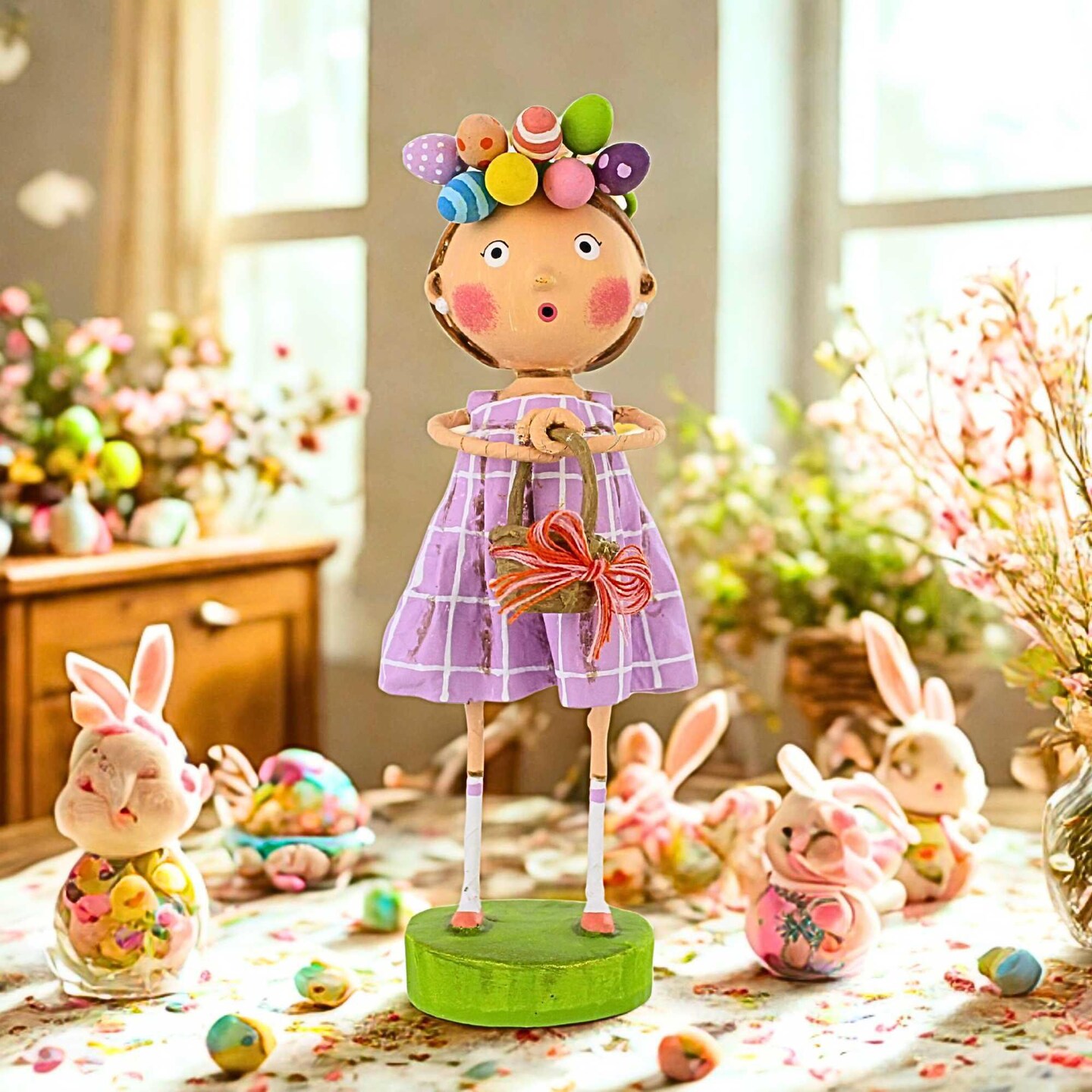 Lori Mitchell 6.0 Inch Polly Anna Easter Figurine , Lightweight Spring Decor Easter Decorated Eggs