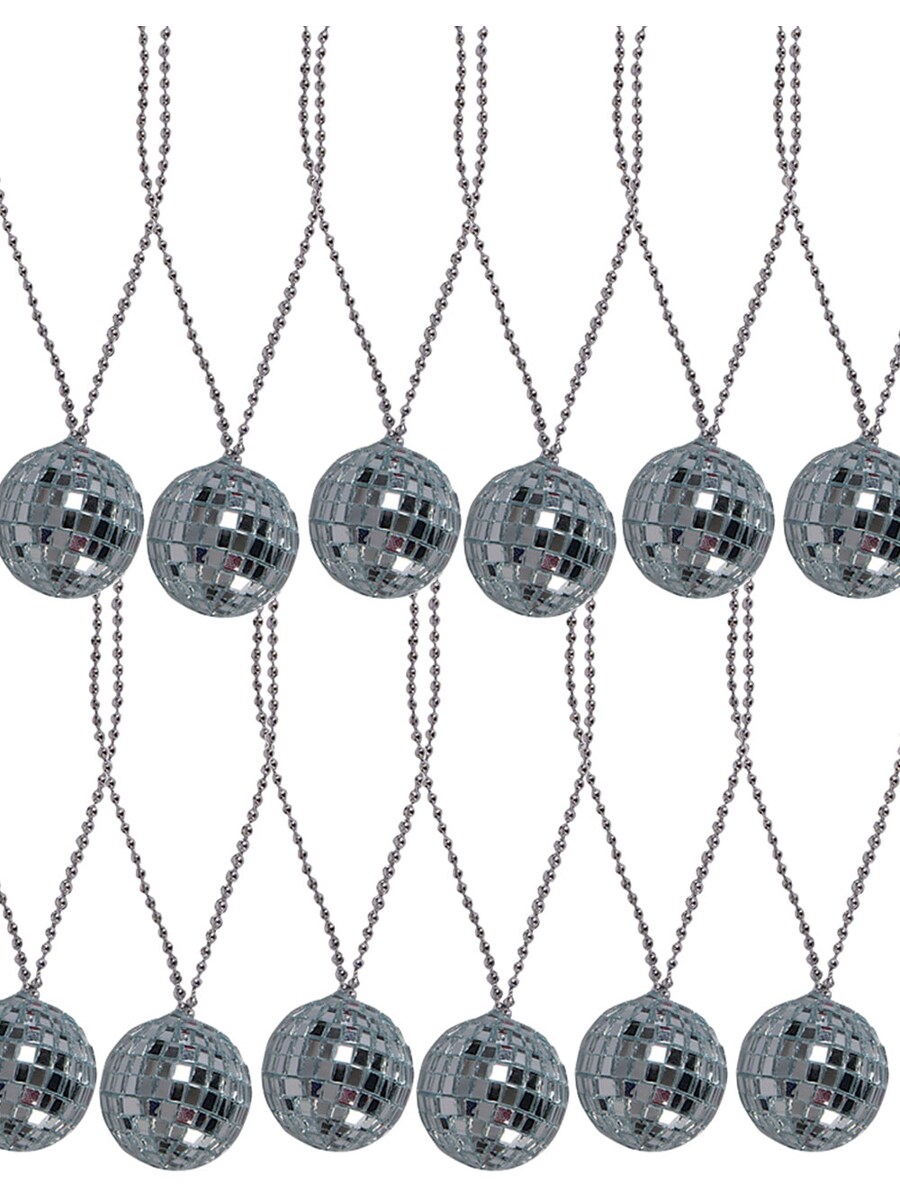 Lot 12 Silver 70s Bling Disco Ball Chain Necklace Costume Accessory