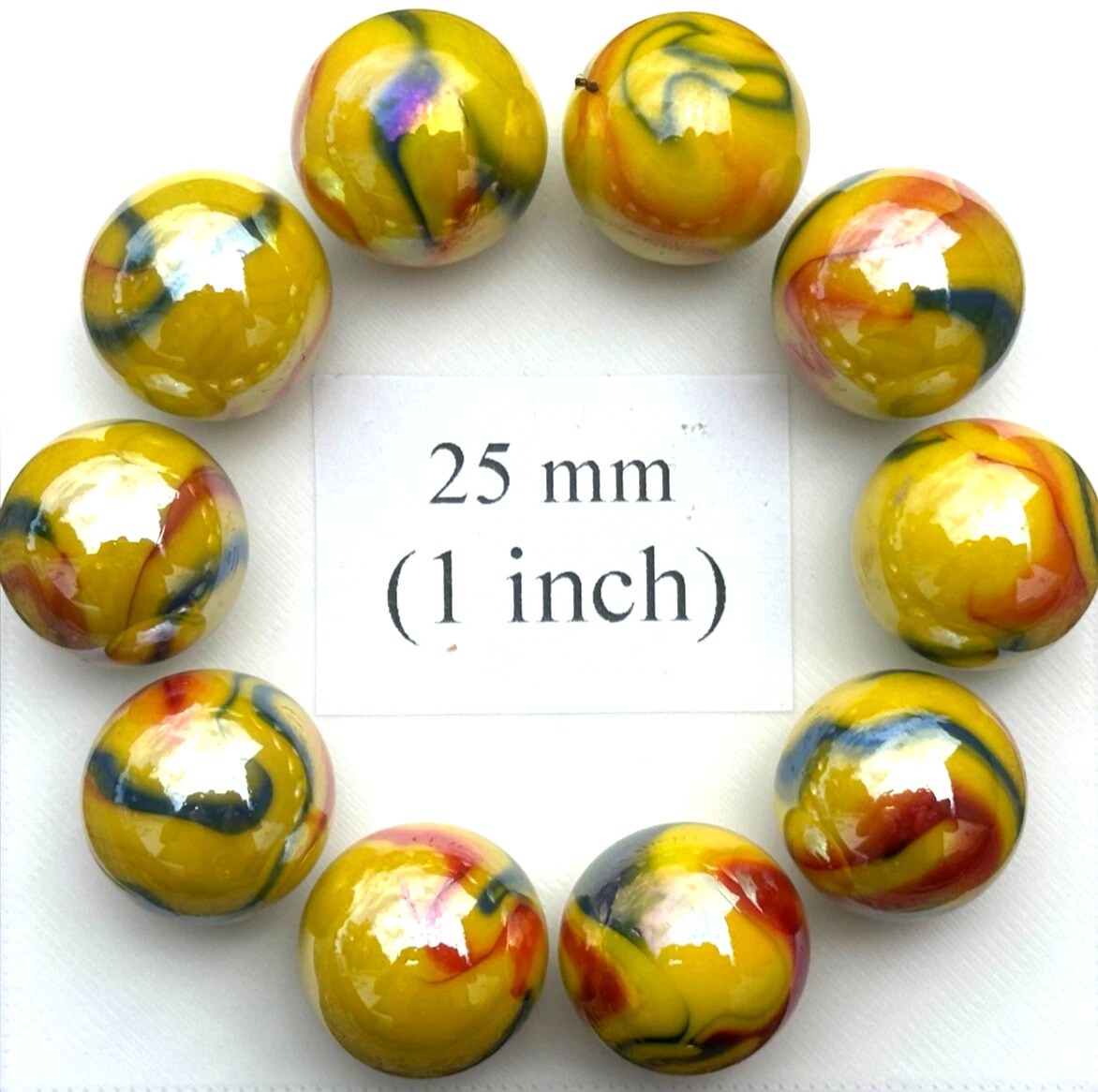 Lot of 10 TROPICANA Yellow/Red Glass Marbles 25mm (1 inch) shooter
