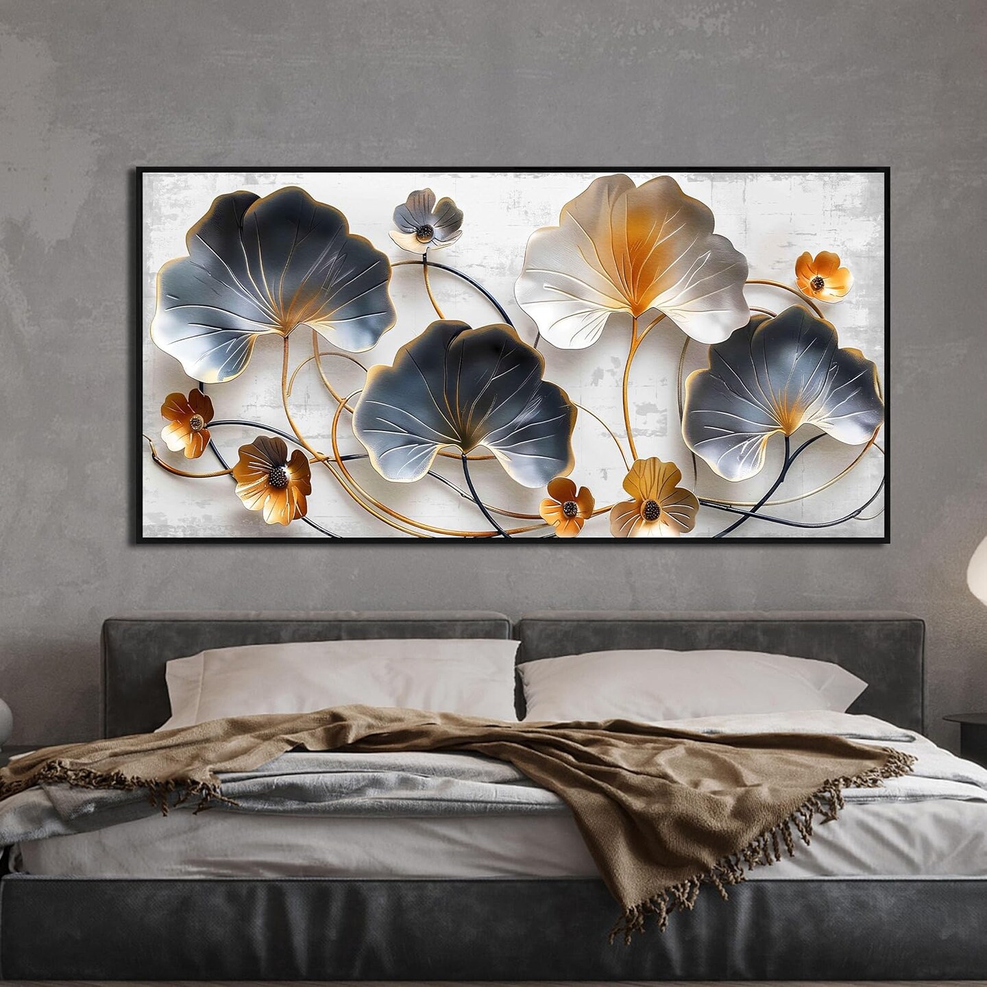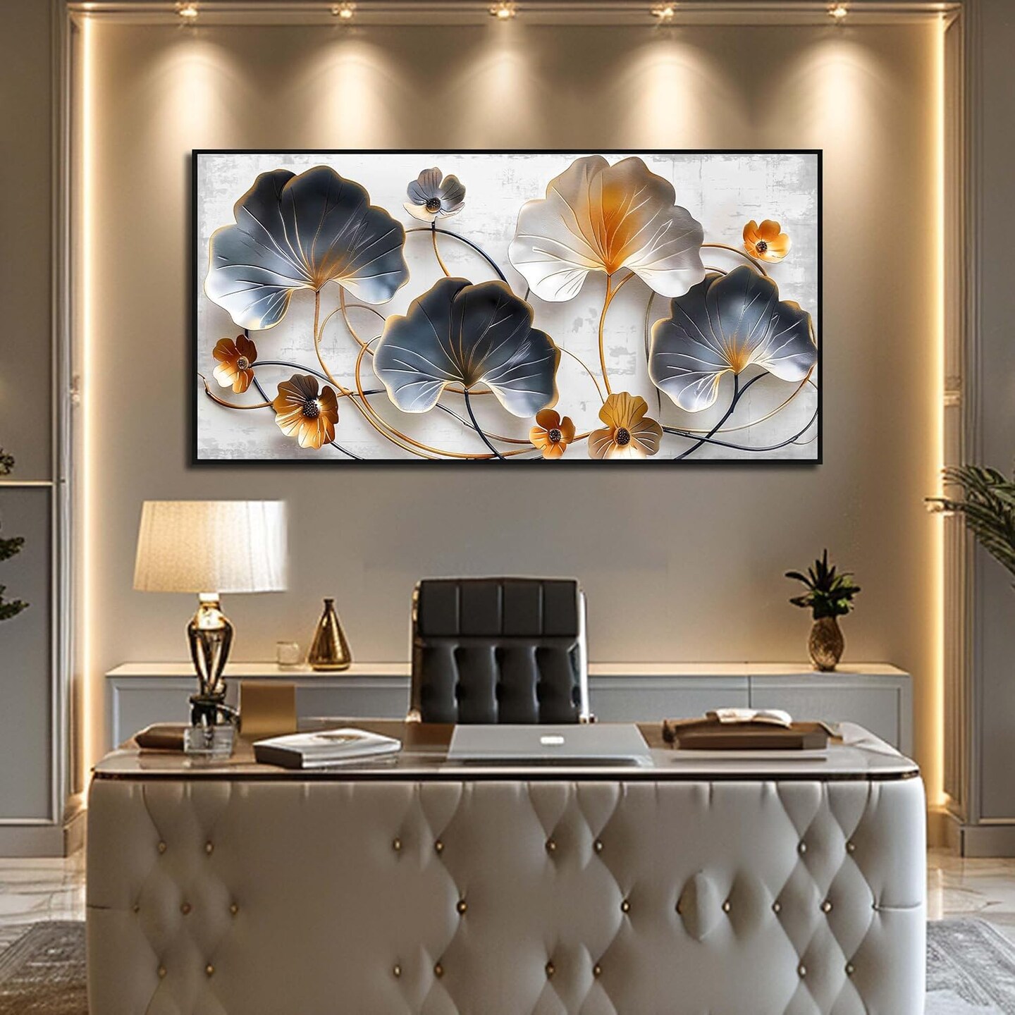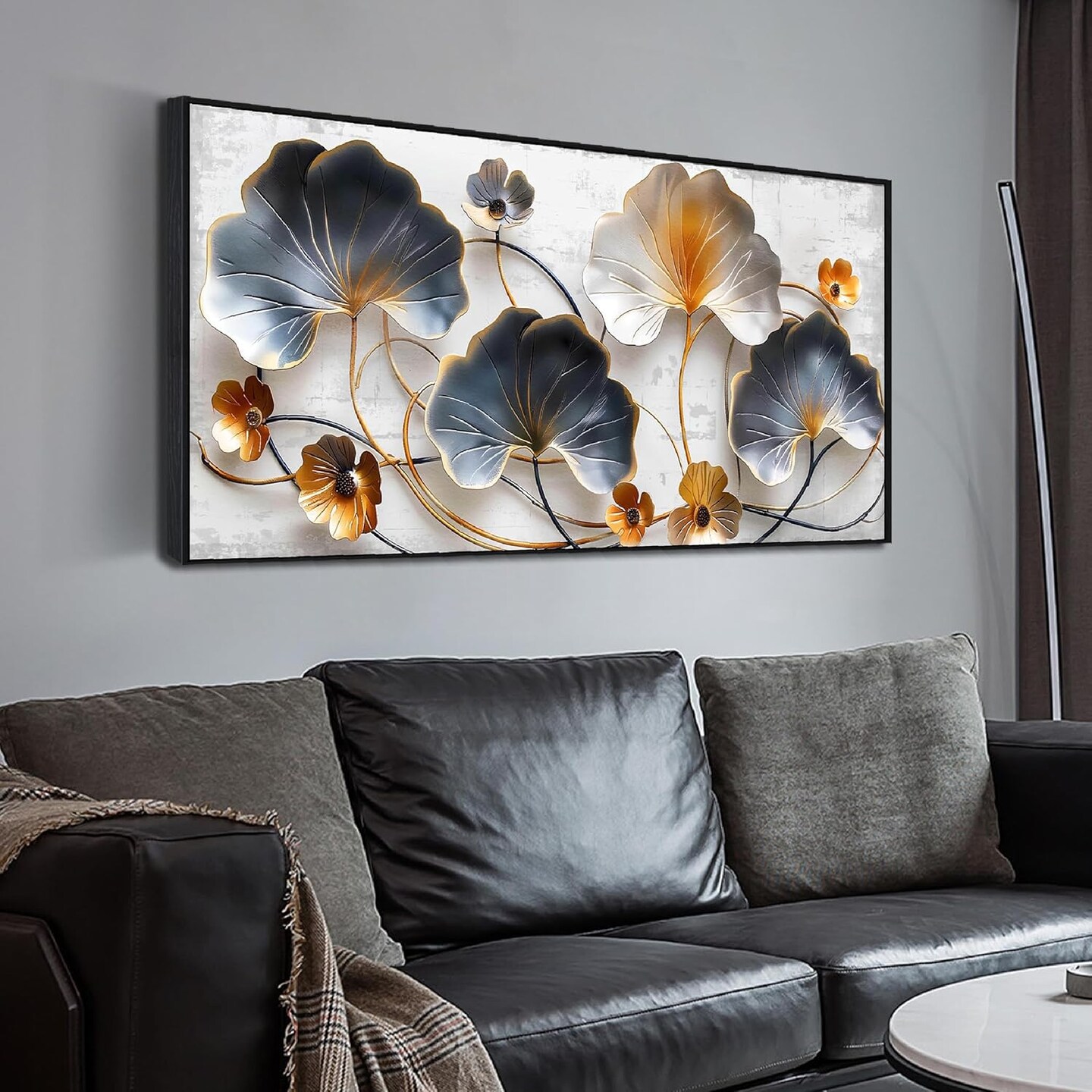Lotus Leaf Wall Art for Living Room, Blue and White Leaves Canvas Wall(Large Size 59 x 29 Inches Framed)