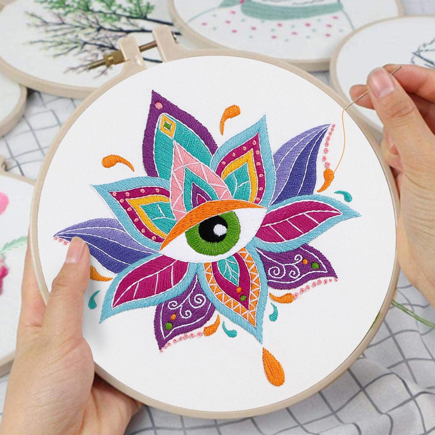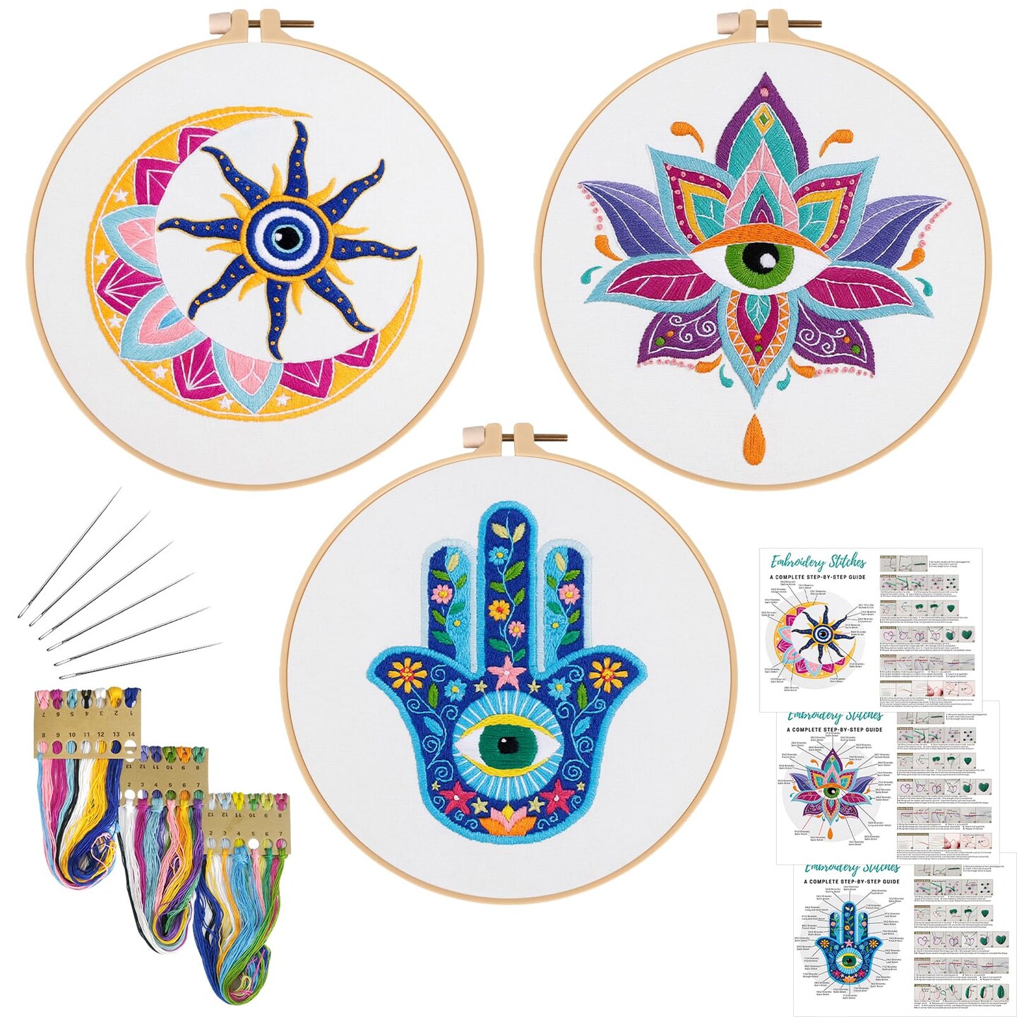 Louise Maelys 3 Set Tarot Evil Eye Embroidery Kits for Beginners,Adults Starter Cross Stitch Kit DIY Needlepoint with Hamsa Hand Sun Moon louts Flower Pattern