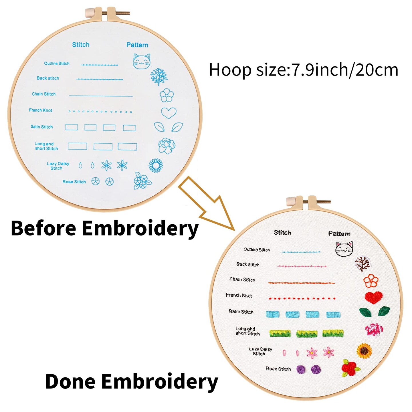 Louise Maelys Beginners Embroidery Kit, 8 Basic Stitches Practice Tool for Adults,Cross Stitch Starter Kits with Cloth Hoop Needles Instruction and Threads