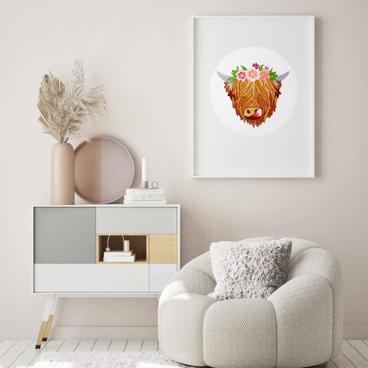 Louise Maelys Highland Cow Stamped Embroidery Kits for Beginners, Cross Stitch kit for Adults Include Instruction,Cloth,Hoop, Needles, Color Threads