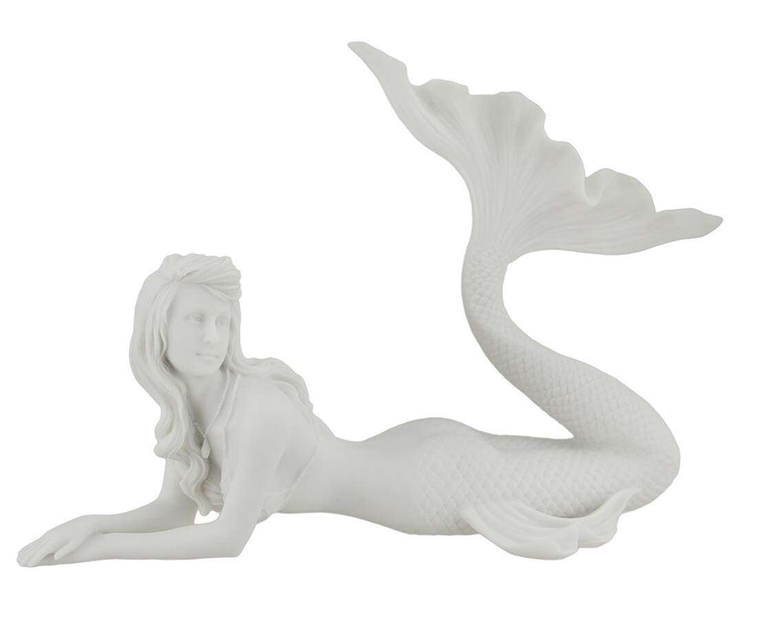 Lounging Mermaid of Lazy Lake Decorative White Marble Finish Statue 11 Inch