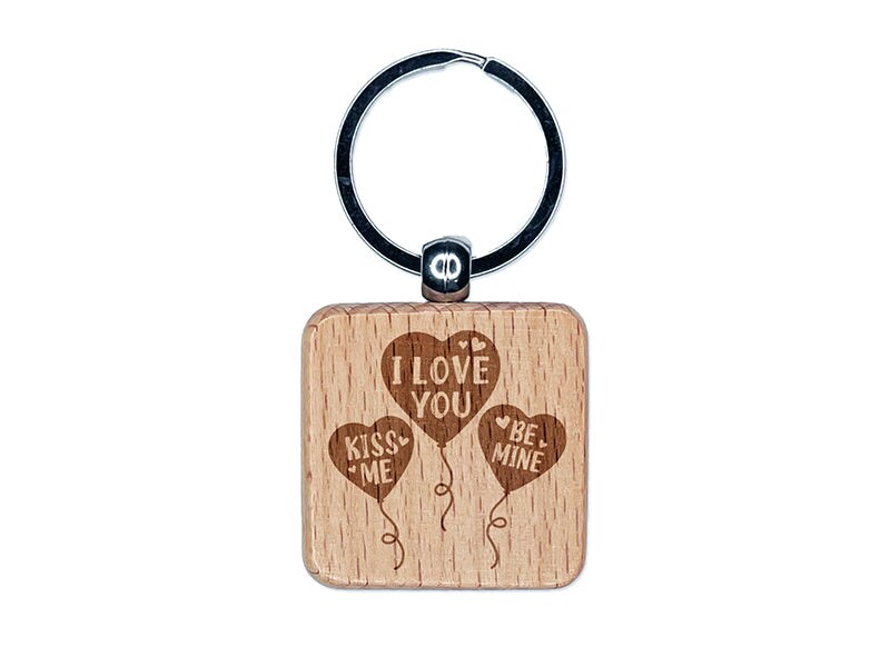 Love Balloons Valentine's Day Engraved Wood Square Keychain Tag Charm