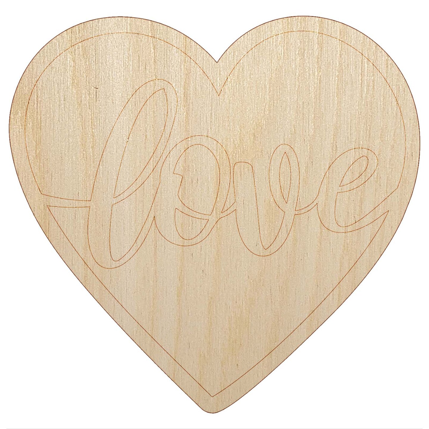 Love Script in Heart Unfinished Wood Shape Piece Cutout for DIY Craft Projects