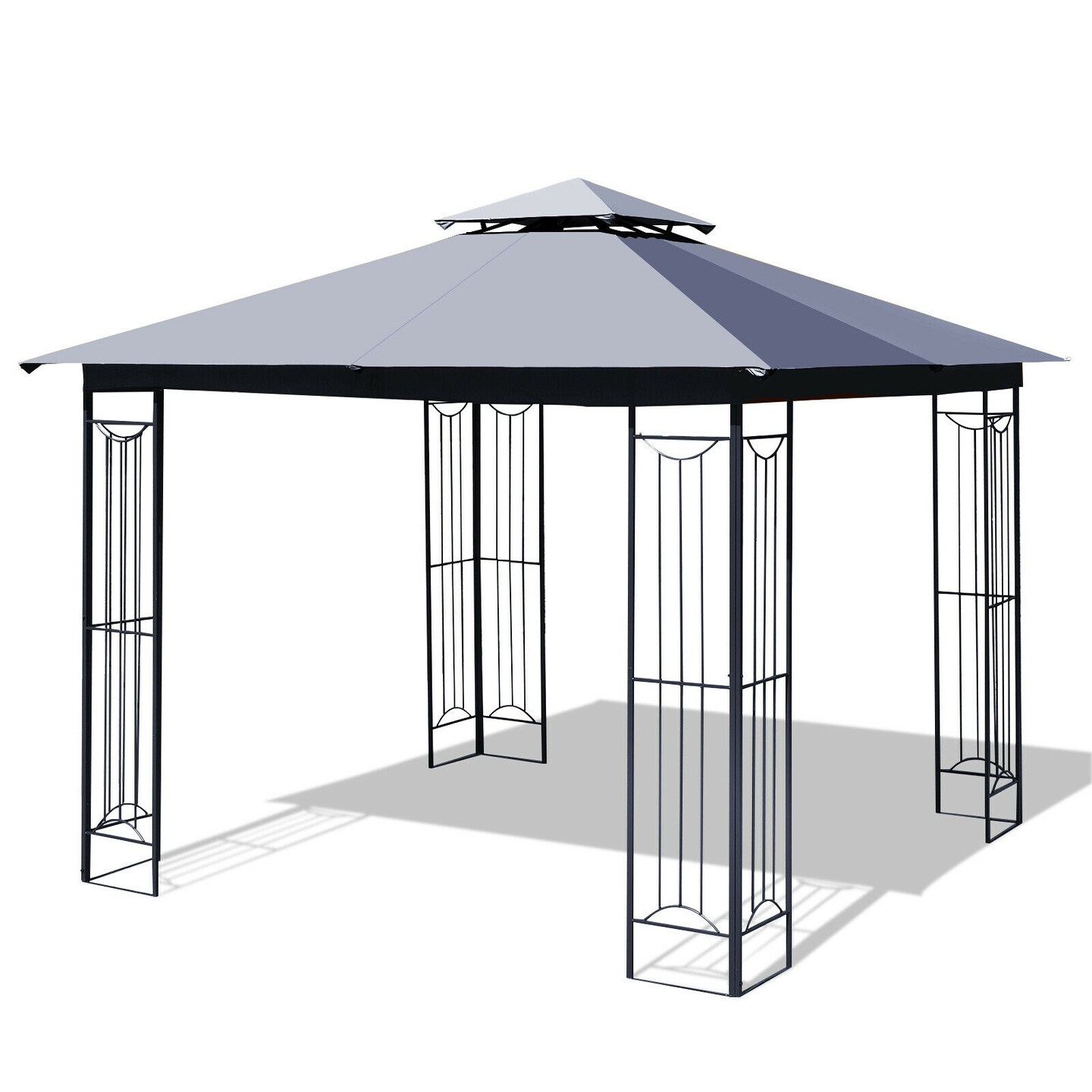 L-Shaped Patio Canopy Gazebo Outdoor 2-Tier Steel Tent