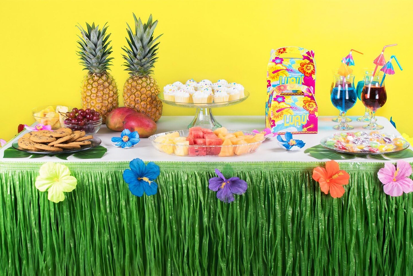 Luau Grass Table Skirt Natural Hawaiian Table Skirt Tropical Party Decorations