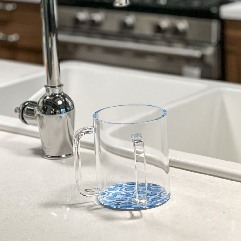 Lucite Wash Cup with Blue Designed Painted Base