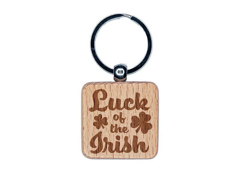 Luck of the Irish Shamrocks Saint Patrick's Day Engraved Wood Square Keychain Tag Charm