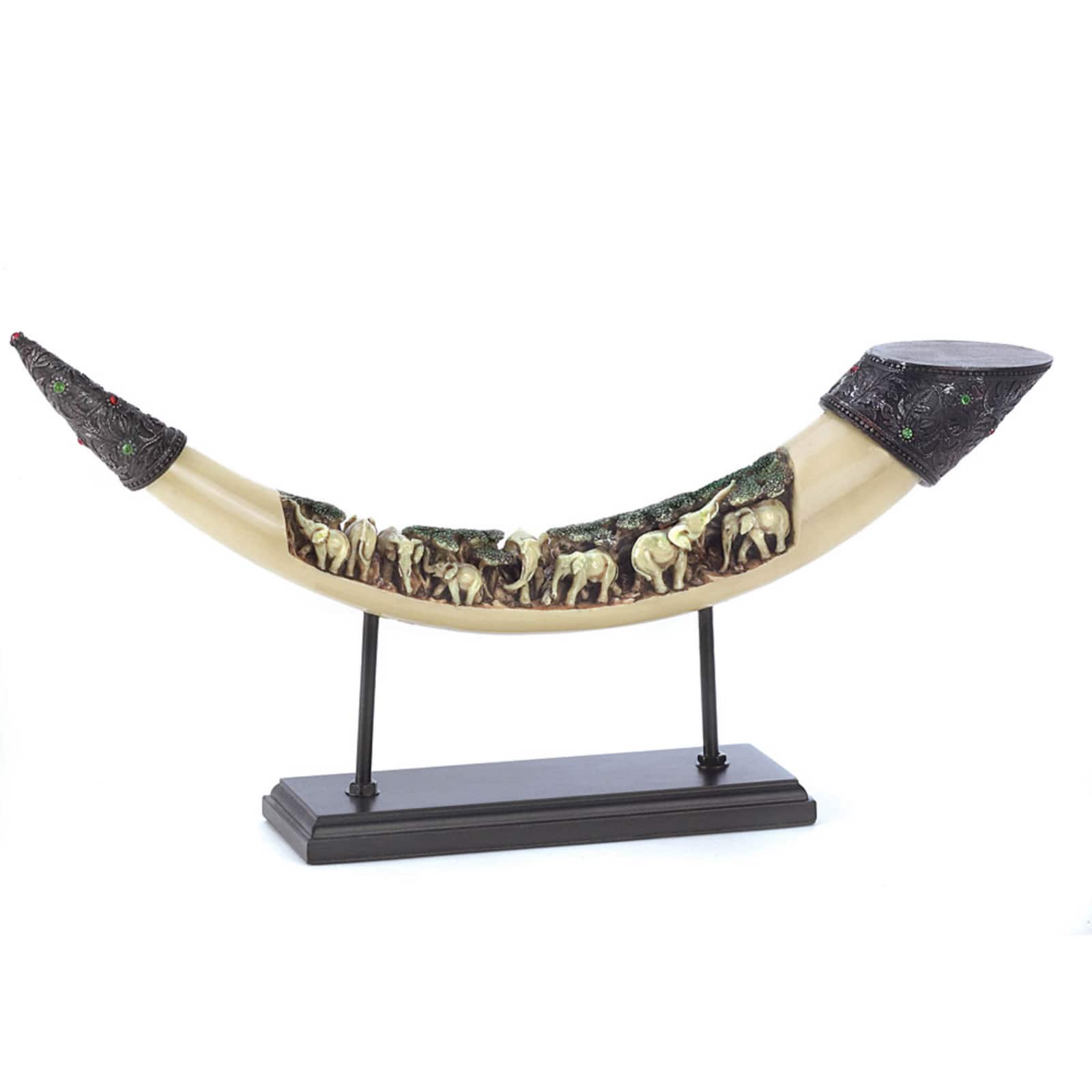 Lucky Elephants Tusk Sculpture 16.5" x 2.75" x 8"