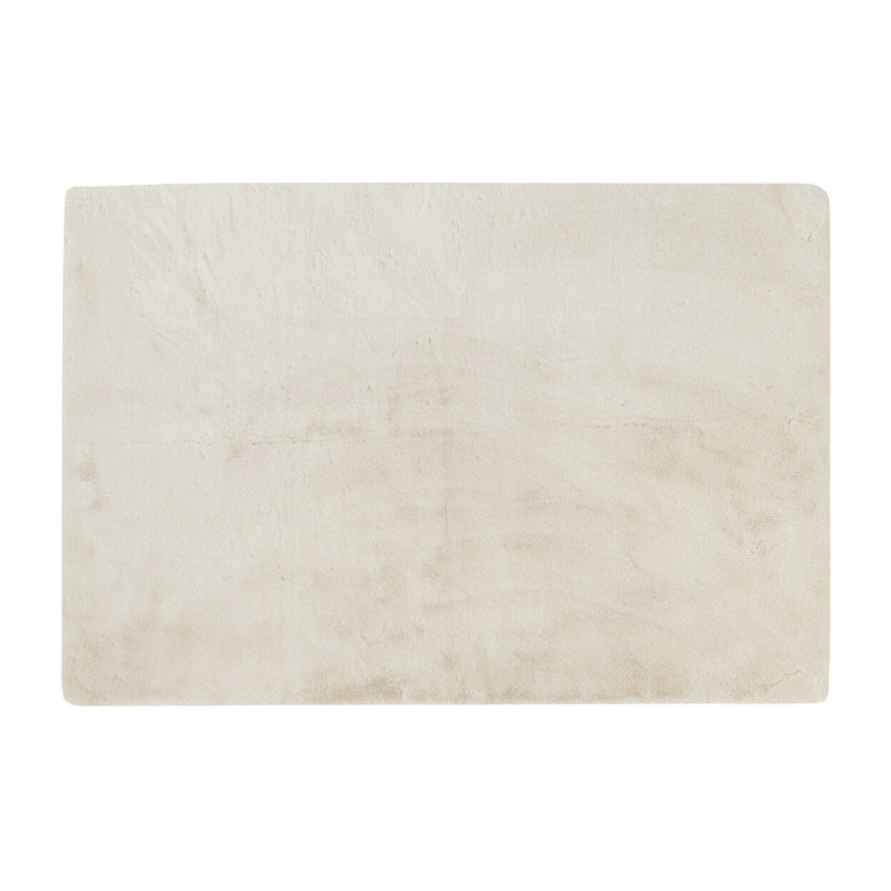 Luxe Faux Rabbit Rectangular Rug Ivory 1-Piece Soft Plush 100% Vegan