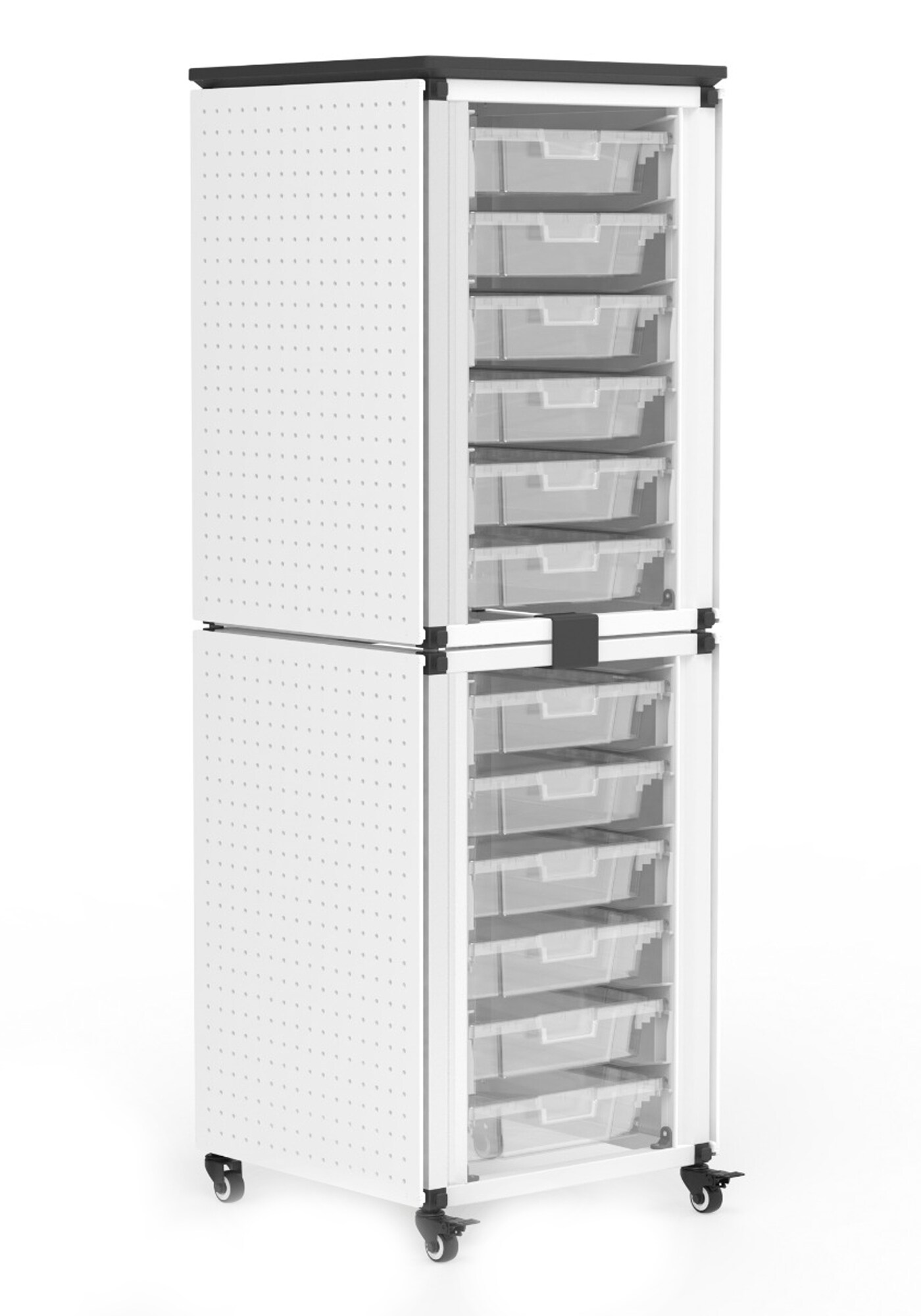 Luxor Modular Classroom Storage Cabinet - 2 stacked Modules with 12 Small Bins