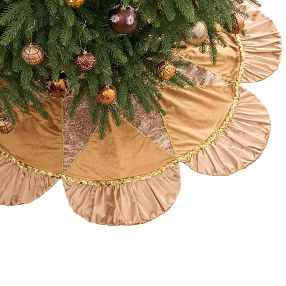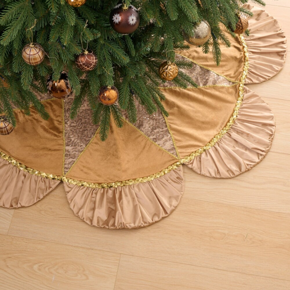 Luxury Gold Scalloped Christmas Tree Skirt, 48-Inch Holiday Tree Base Cover with Sequins and Pleated Trim