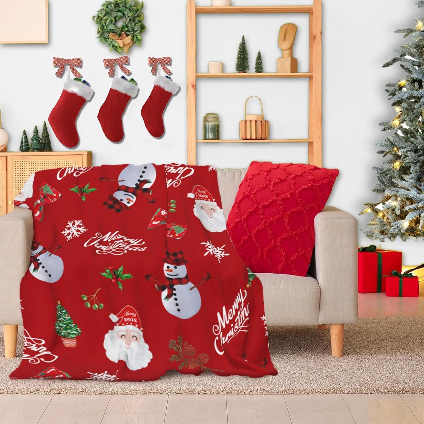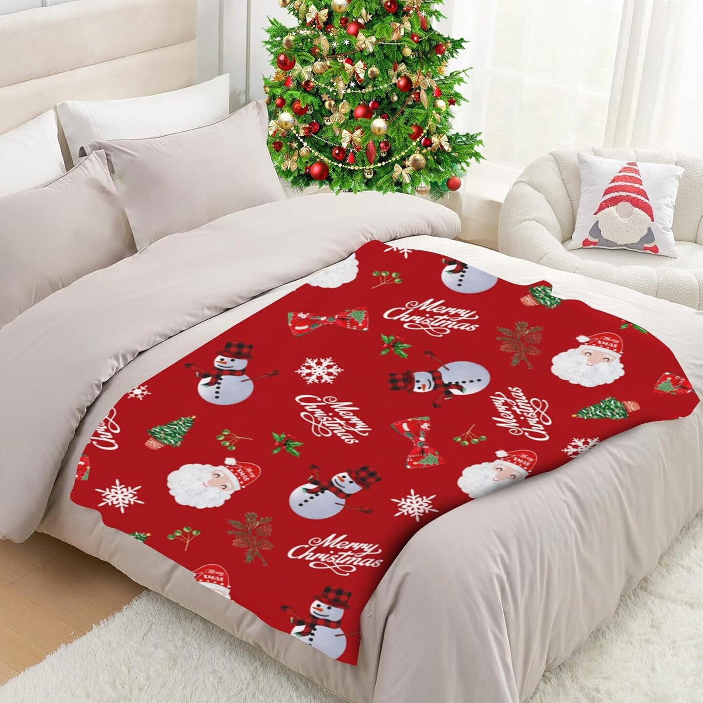 Luxury Plush Christmas Blanket Snowman Santa Claus Buffalo Plaid Christmas Throw Blanket for Couch Lightweight Soft and Warm Throws Blankets for Sofa Bed Living Room in Fall Winter 50"x40"