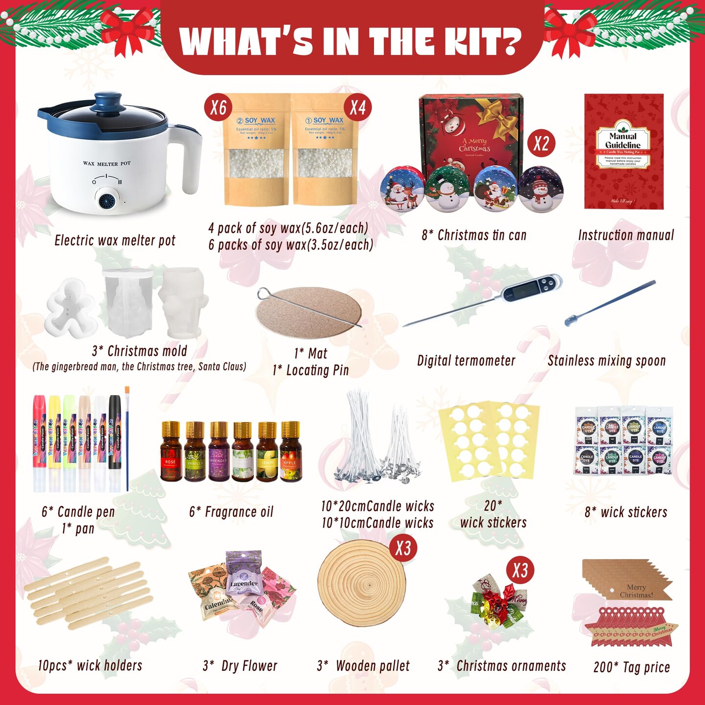 Luxury Soy Candle Making Kit with Molds, Make Your Own Scented Candles at Home with Wax Melter, Candle Wax Pen & Fragrances, Dried Flowers, All-in-One Wax Melt Kit and Moulds