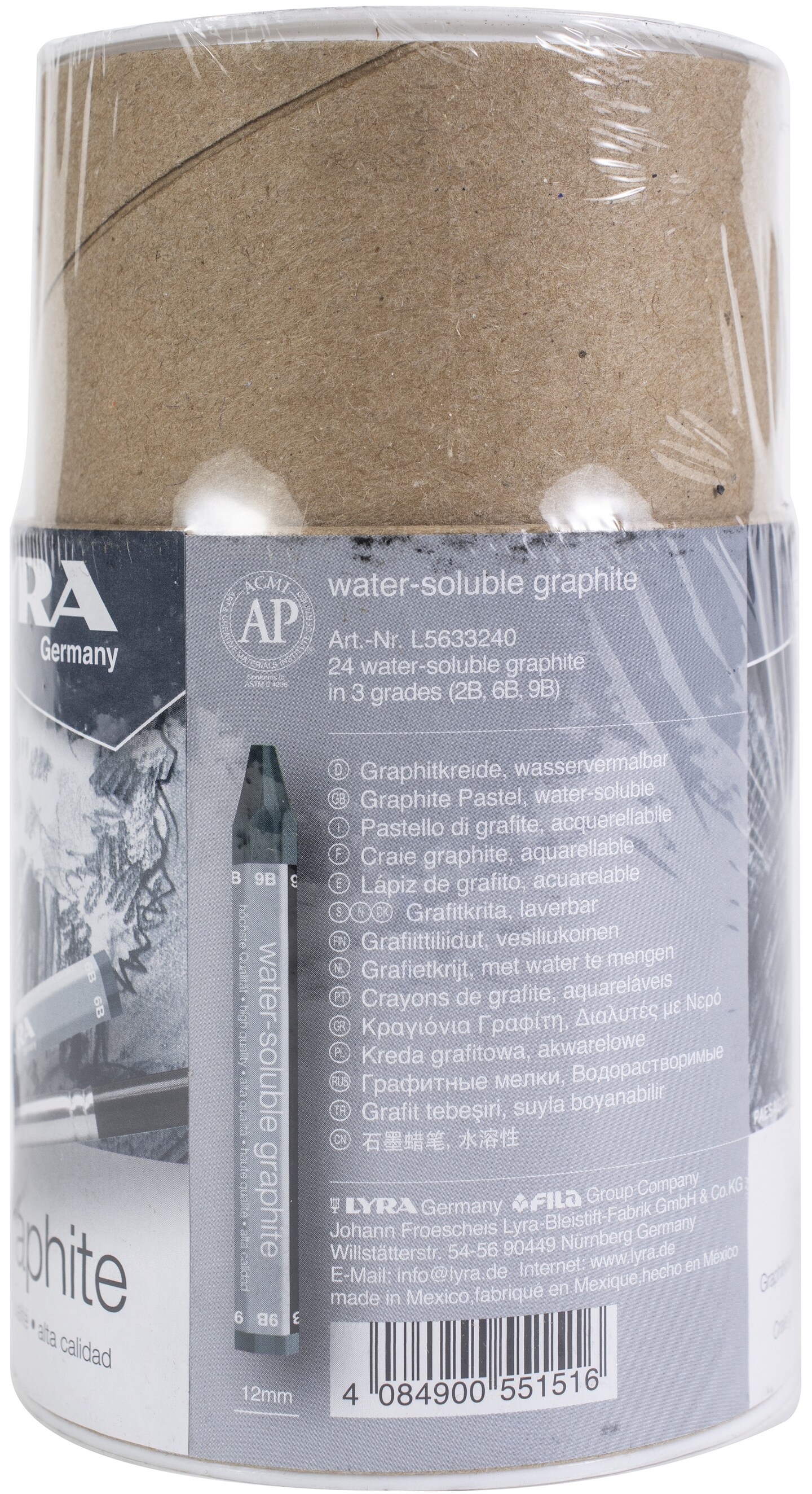 Lyra Graphite Water-Soluble Crayons 24/Pkg-Assorted 2B, 6B, 9B