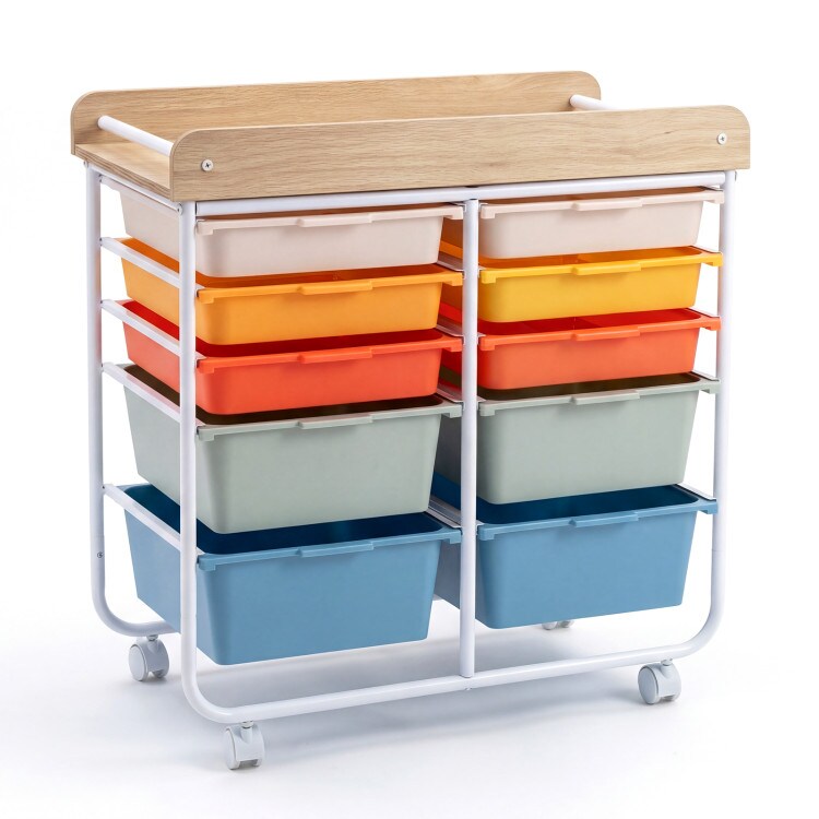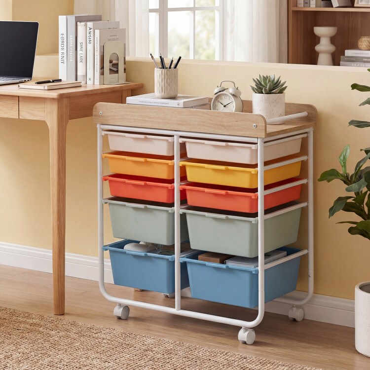 Macaron Rolling Cart MDF Metal Multipurpose 10-Drawer Organizer