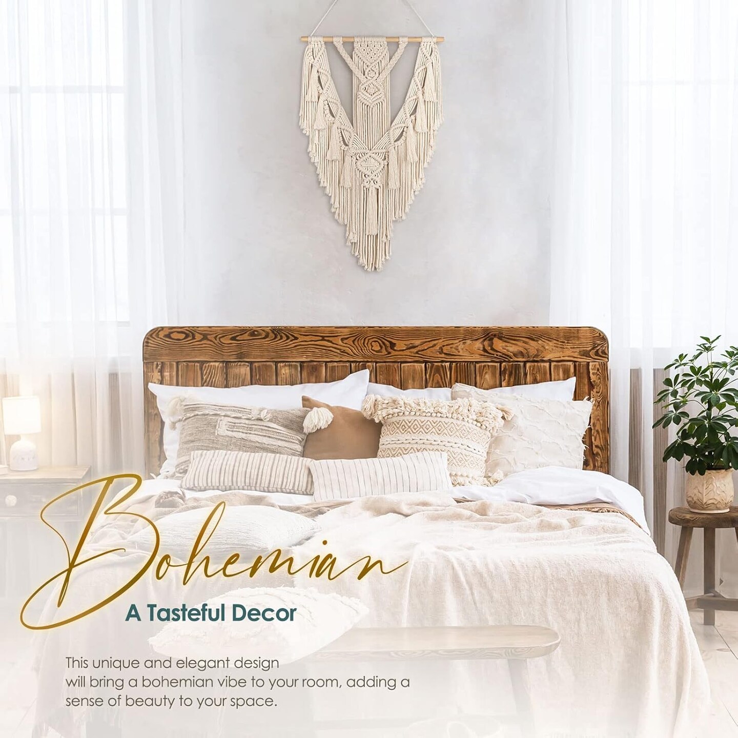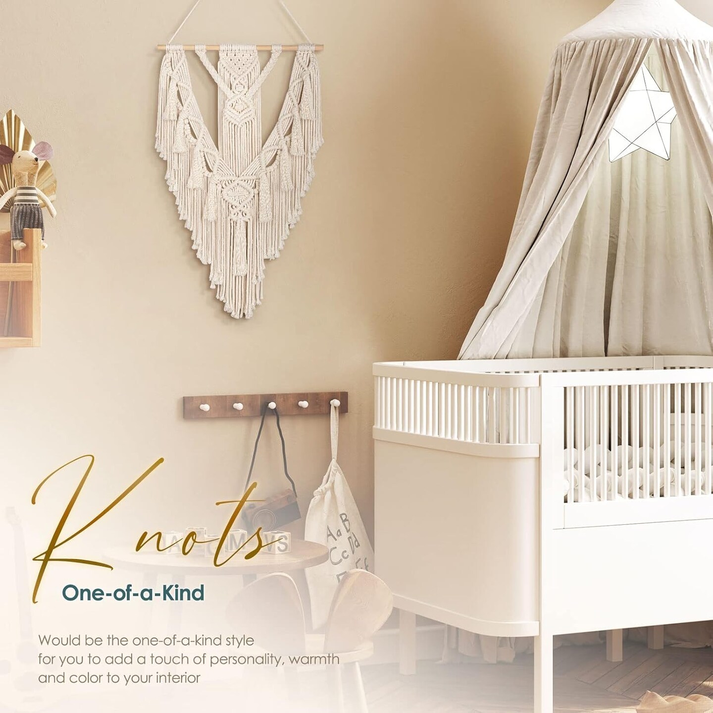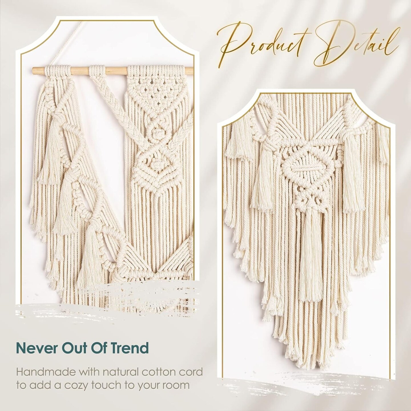 Macramé Boho Wall Hanging Décor – Geometric Woven Tapestry with Long Tassel, Handmade Cotton Bohemian Art for Dorm, Bedroom, or Western-Style Home, Great Gift for Women