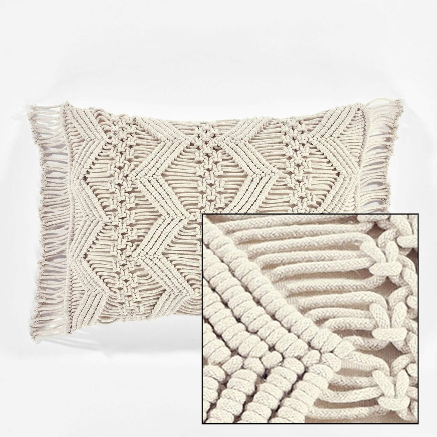 Macrame Decorative Throw Pillow Cover, 20" W x 13" L (Neutral)