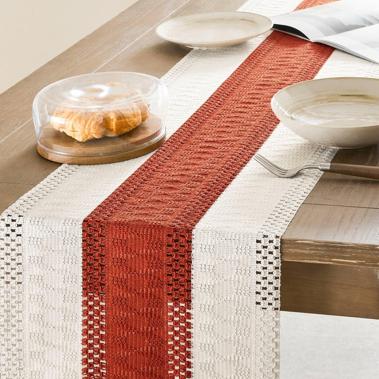 Macrame Style Bicolor Stitching Table Runner