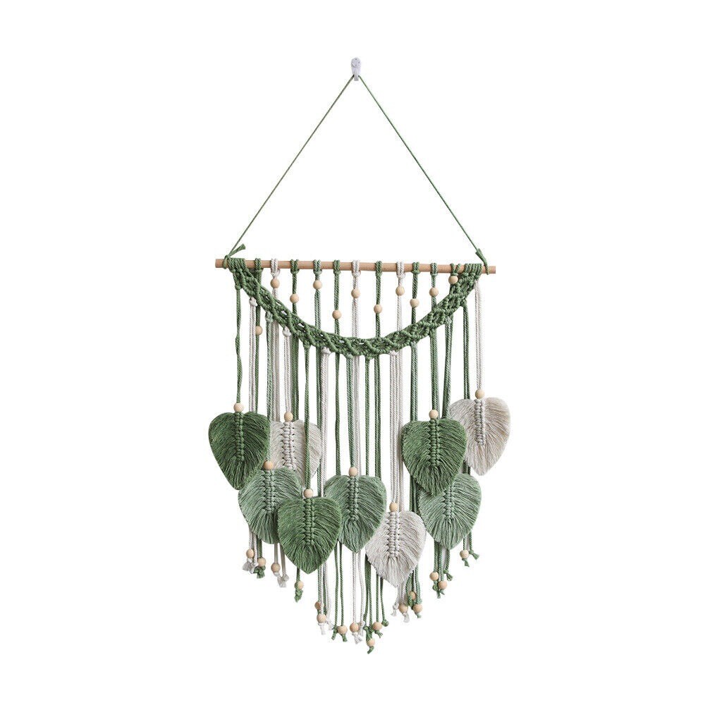 Macrame Wall Hanging Boho Leaf Woven Tapestry Cotton Tassels Wall Art Decor