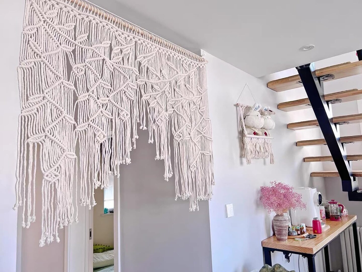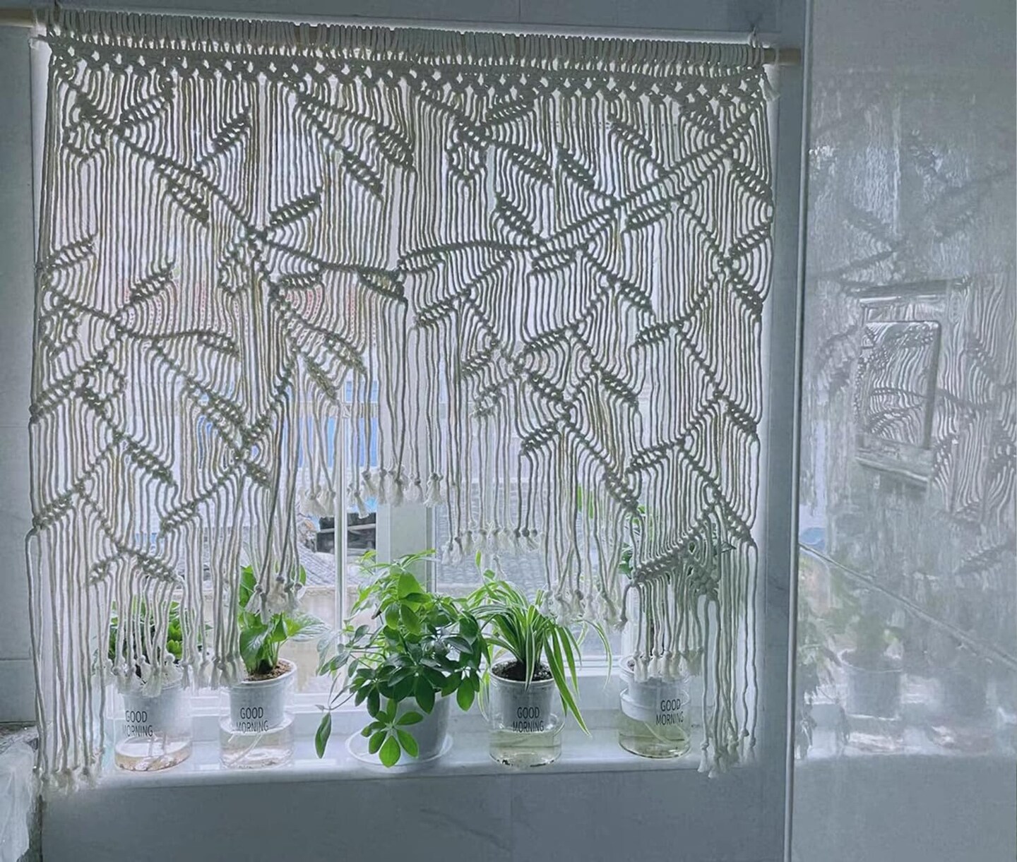 Macrame Wall Hanging Boho Woven Tapestry Valance Leaf Curtain Decoration Bedroom Living Room Home Macrame Curtains