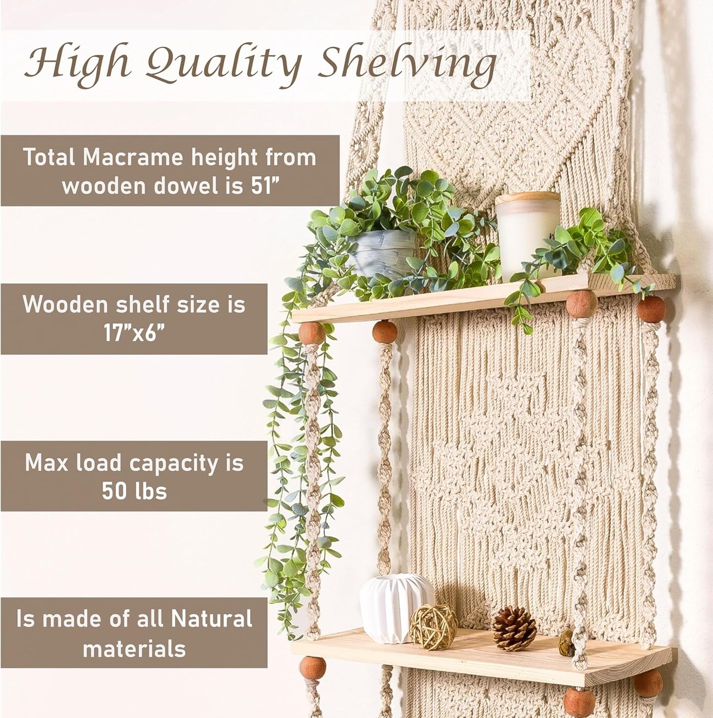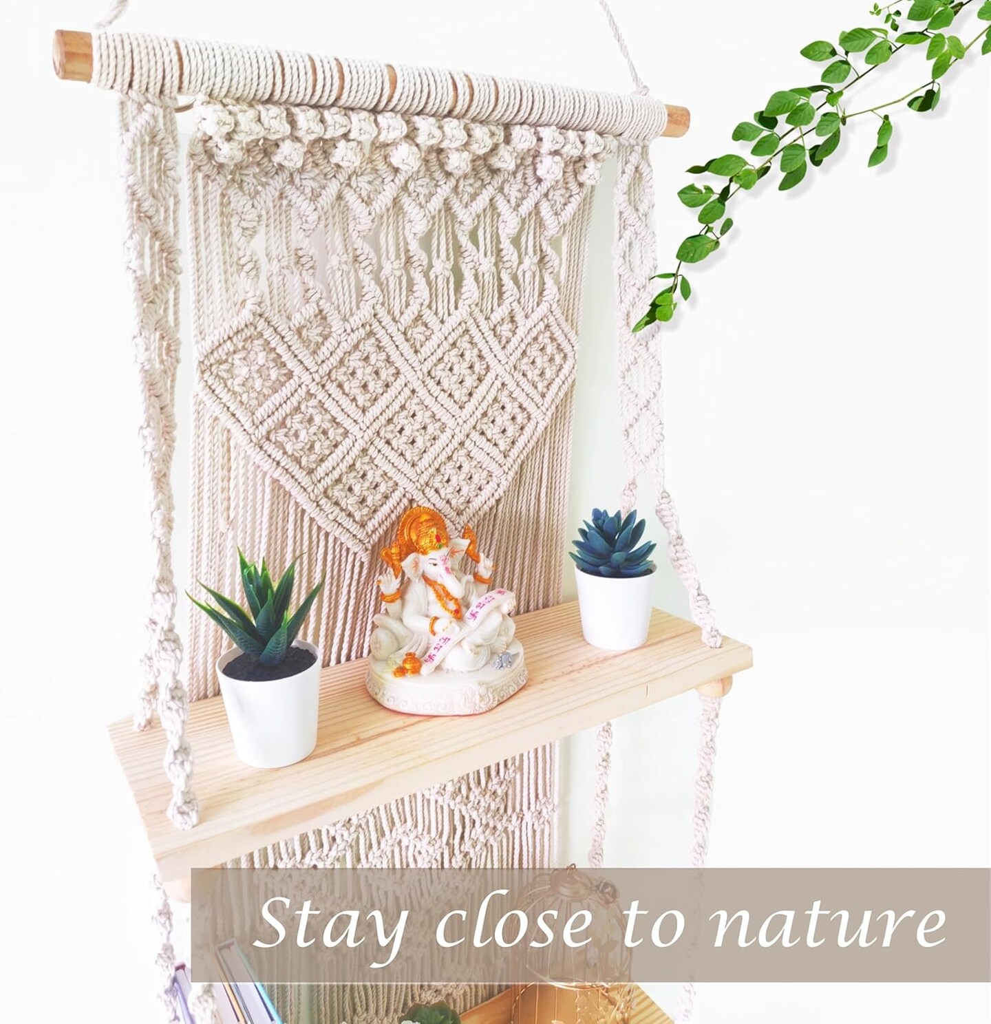 Macrame Wall Hanging Shelf 3 Tier Boho Wall Plant Hanger Shelves
