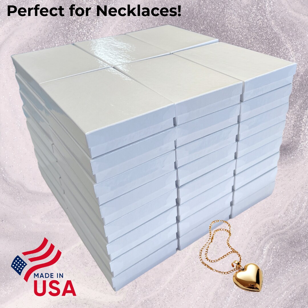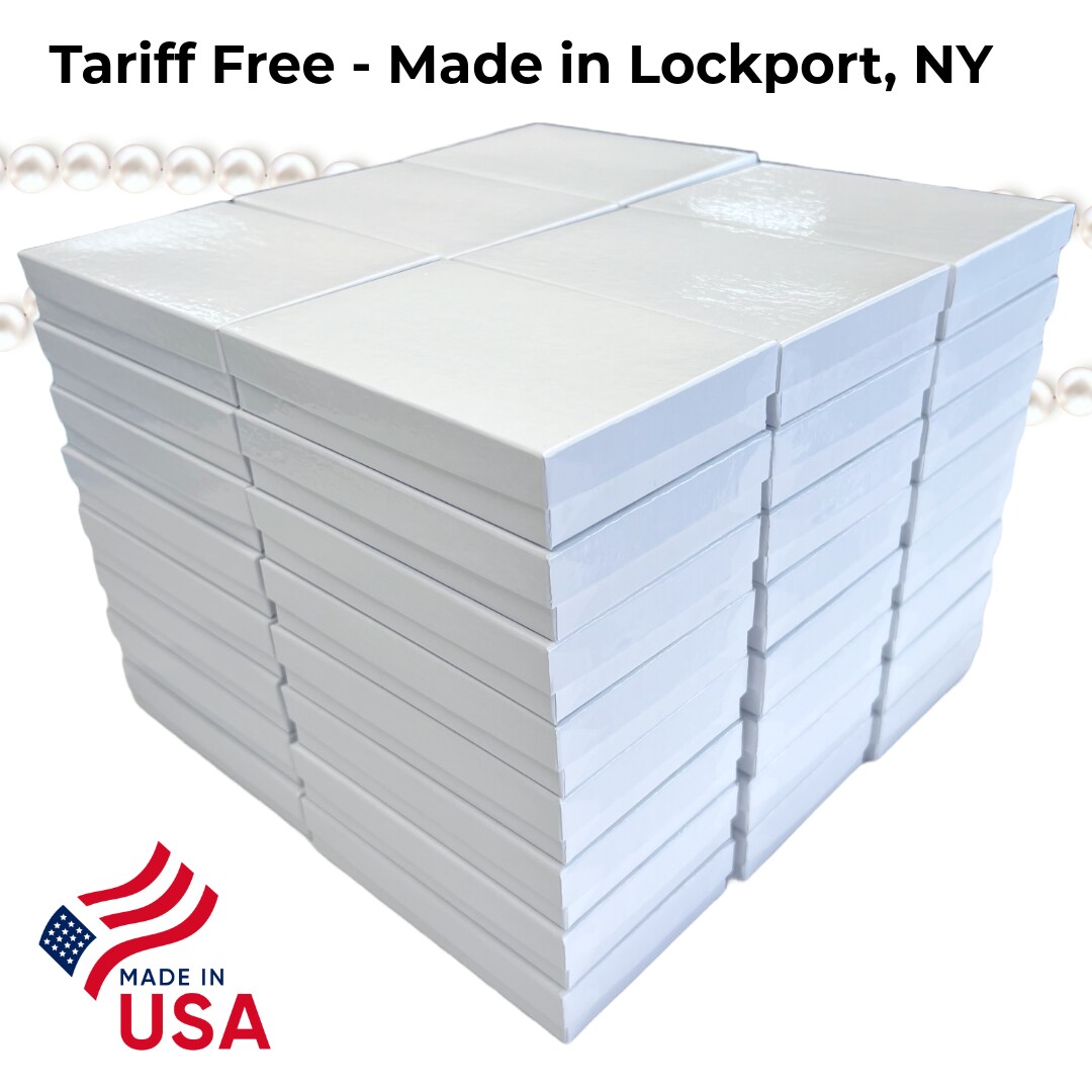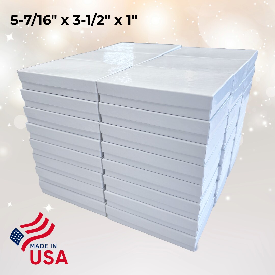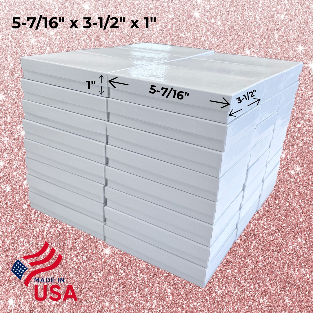 Made in the USA - 48 White Gloss Jewelry Boxes 5-7/16" x 3-1/2" x 1" Cardboard 2 piece jewelry boxes
