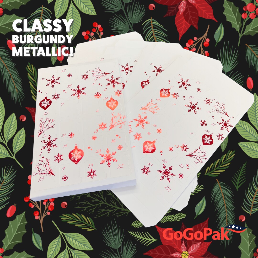 Made in USA - 10 Sets - Empty Advent Calendar Boxes/Trays - Burgundy Metallic - Food Safe - DIY Sublimation Personalization