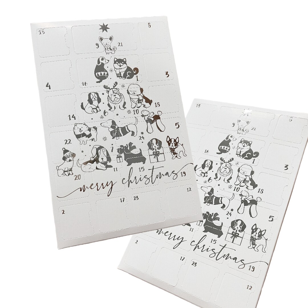 Made in USA - 10 Sets - Empty Advent Calendar Boxes/Trays - Silver Metallic Dog Tree Design - Food Safe - DIY Sublimation Personalization