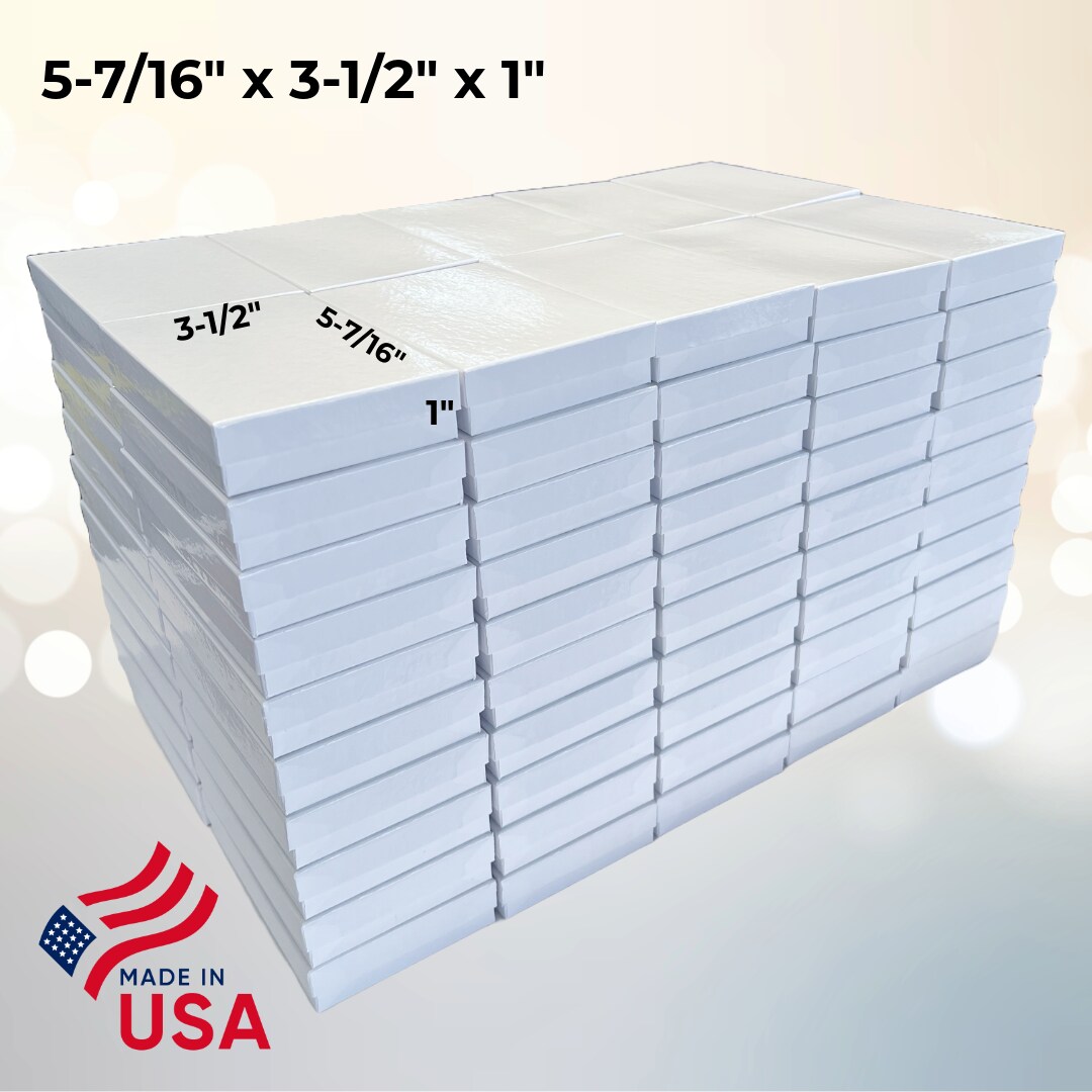 Made in USA - 100 White Gloss Jewelry Boxes - 5-716" x 3-1/2" x 1" Necklace & Jewelry Set Boxes
