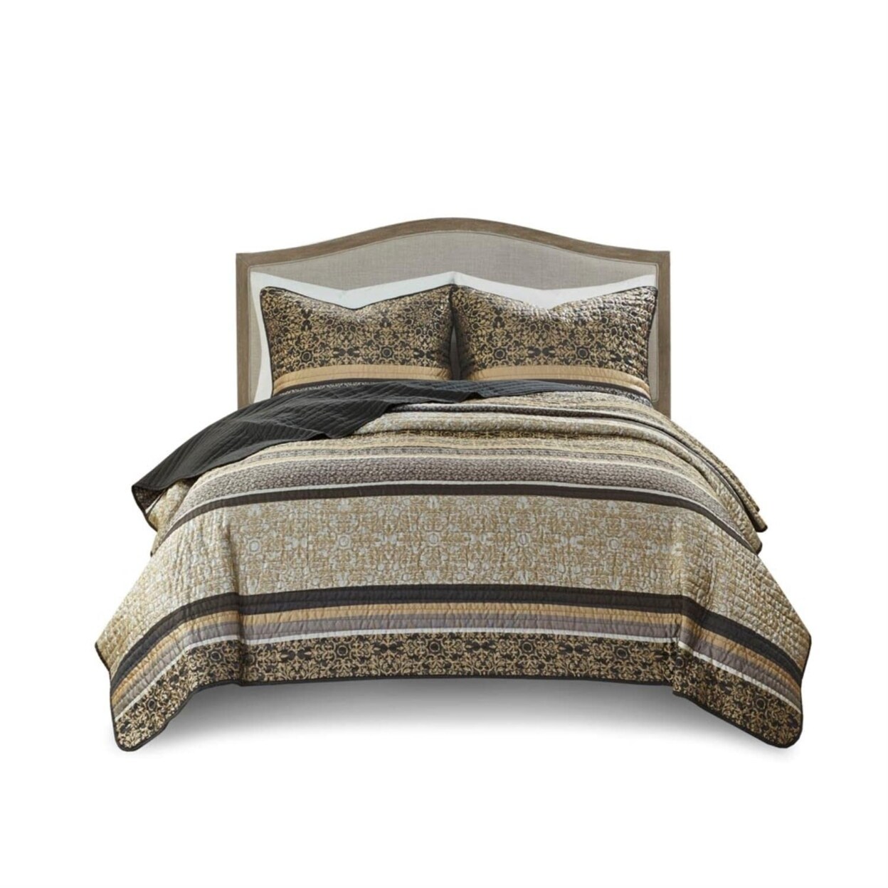 Madison Park   Polyester Jacquard Coverlet Set in Black and Gold Finish MP13-7724