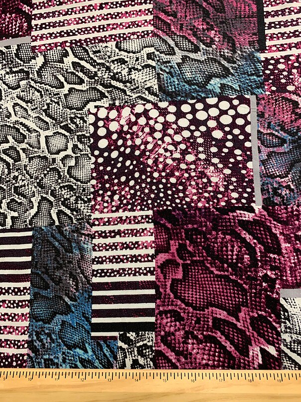 Magenta and Teal Animal Multi Patchwork Print Challis Fabric By the Yard