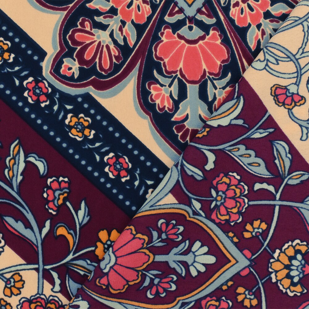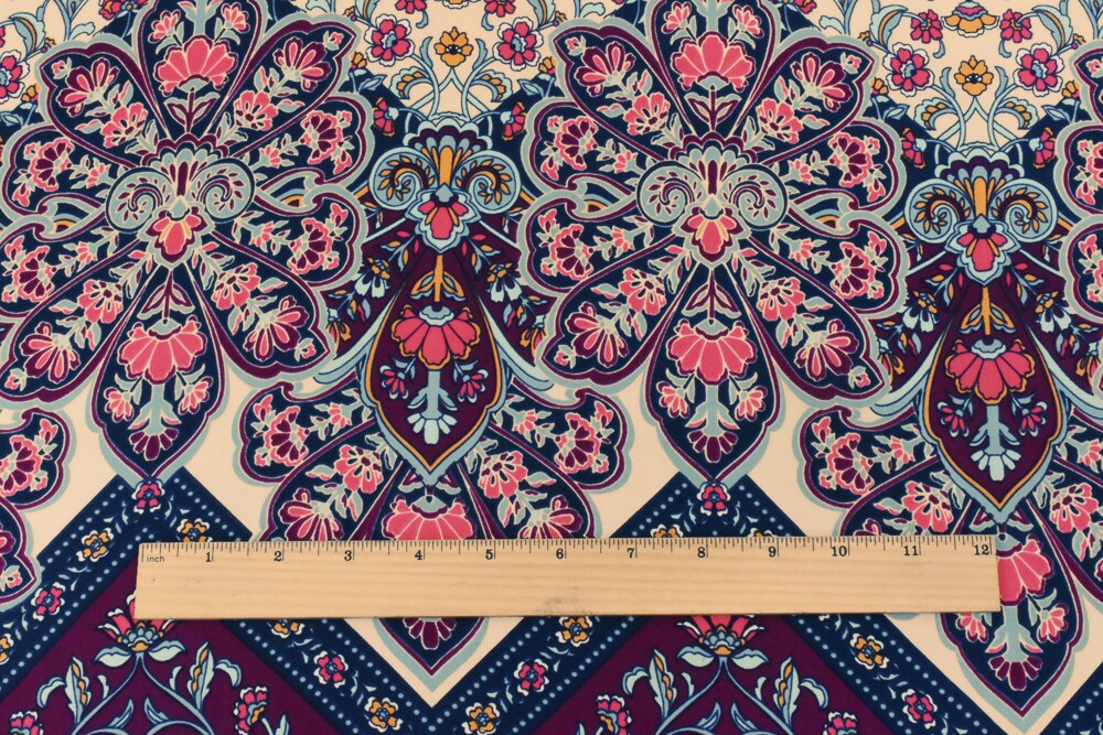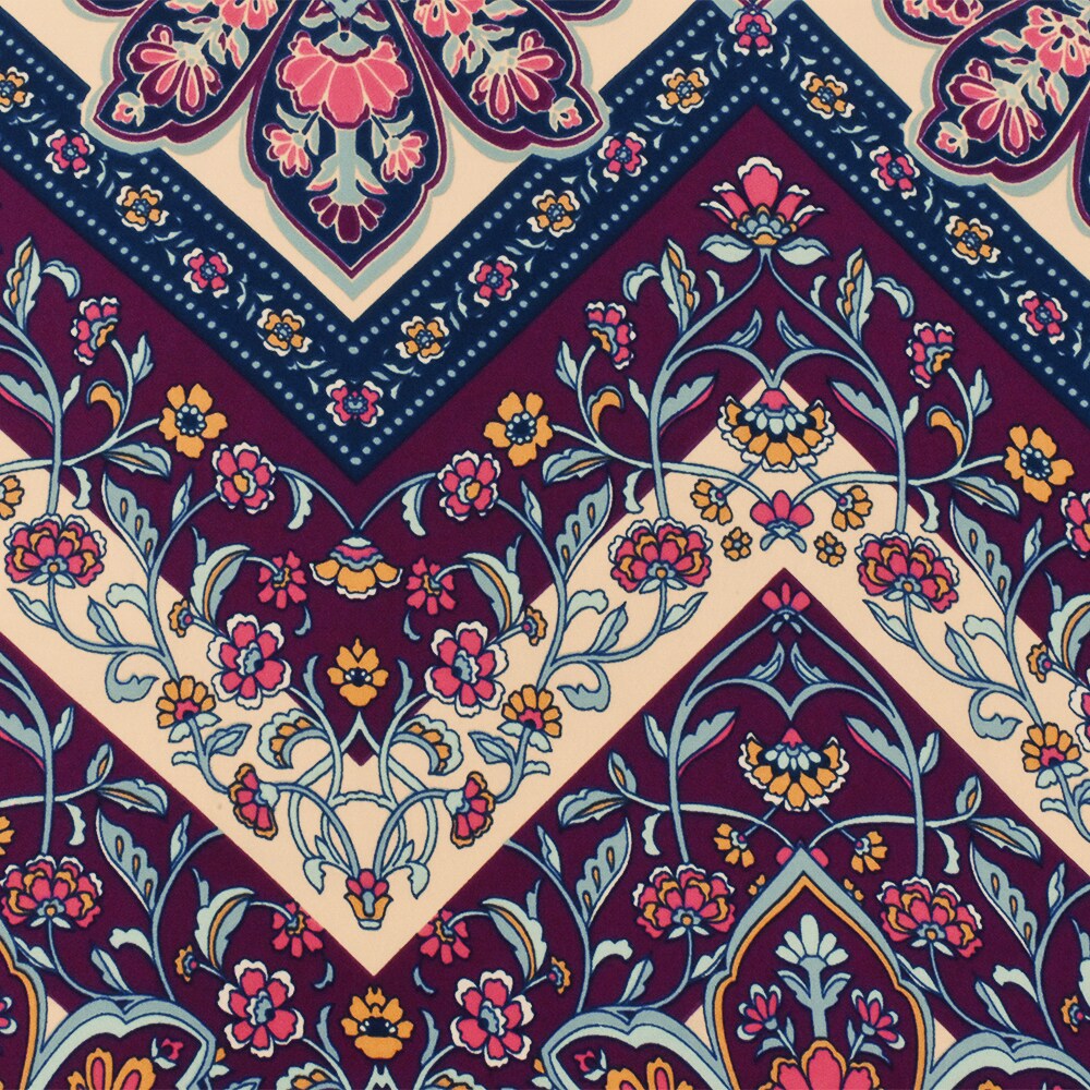 Magenta-Blue-Multi Floral Chevron Printed Poly Georgette Woven Fabric By the Yard