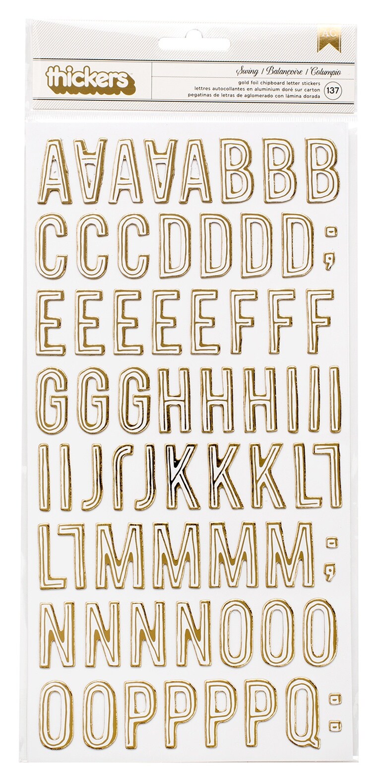 Maggie Holmes Carousel Thickers Stickers 137/Pkg-Swing Alphabet/Gold Foiled Chipboard