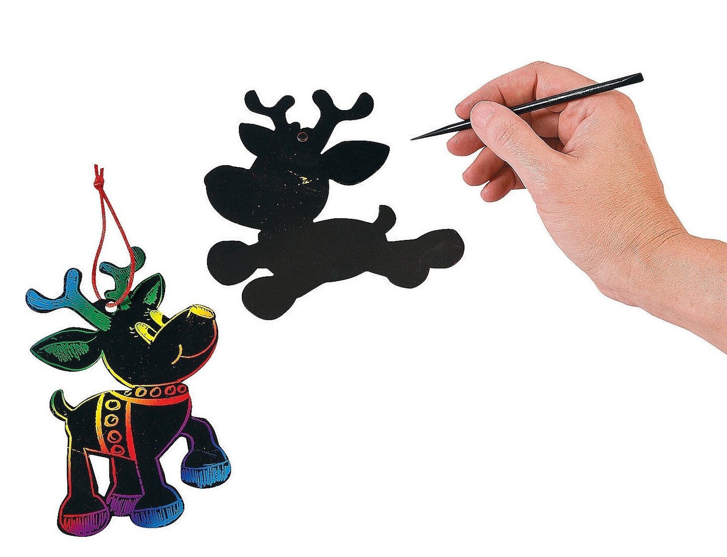 Magic Color Scratch Reindeer Christmas Ornaments (24 Pcs) - Crafts for Kids & Ornament Crafts