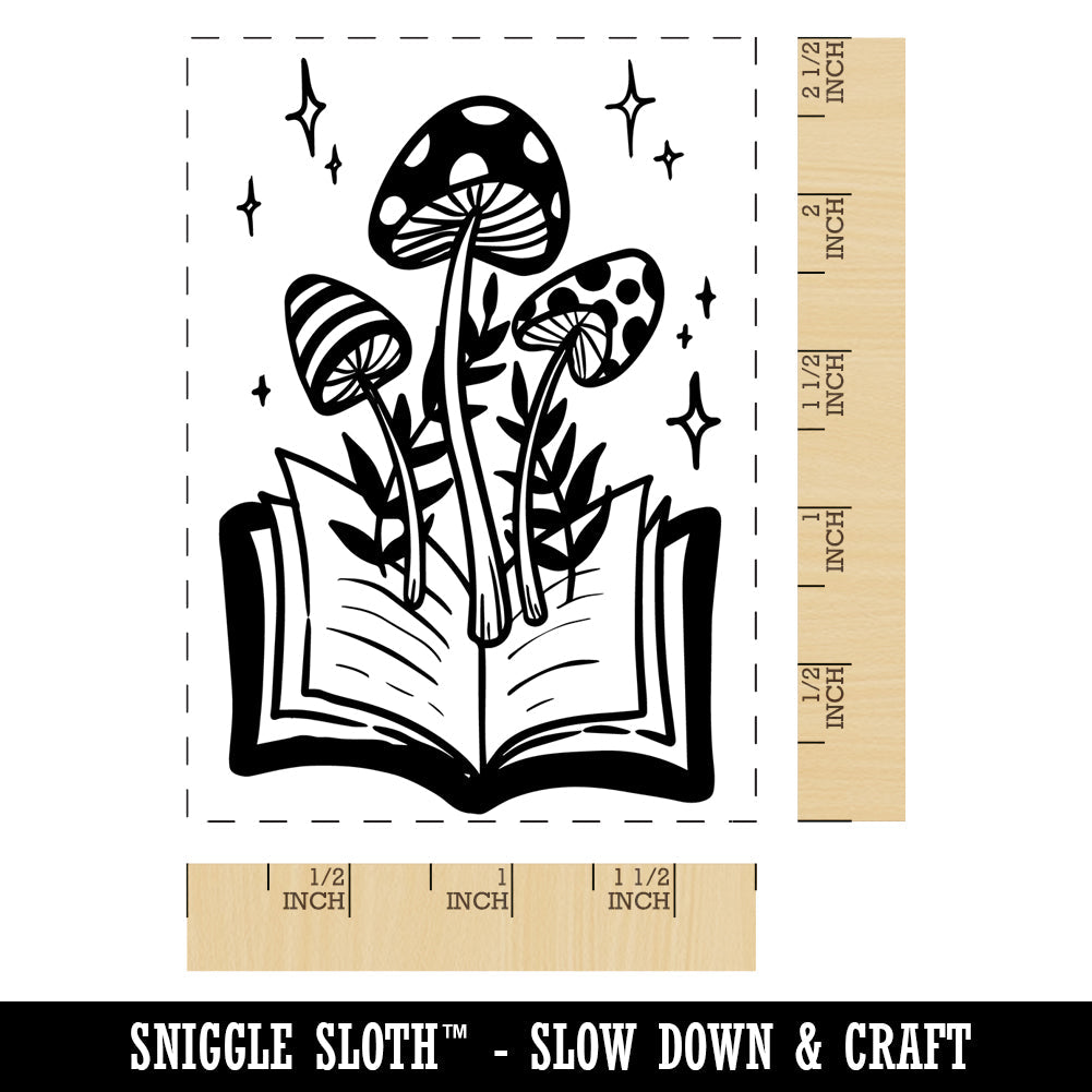 Magical Book Mushrooms Ferns Rectangle Rubber Stamp for Stamping Crafting