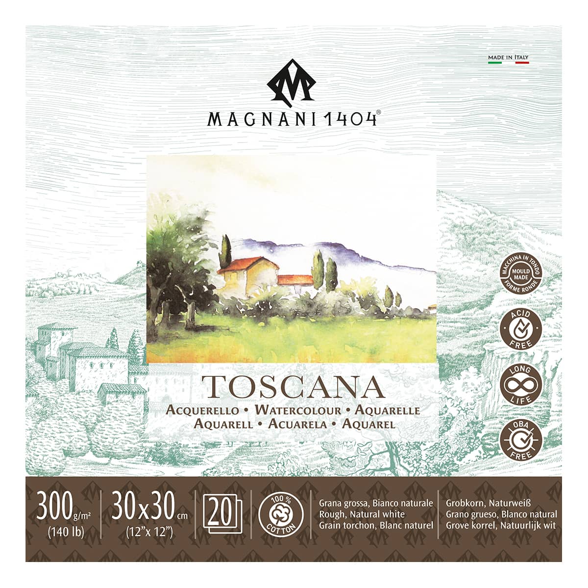 Magnani 1404 Toscana Rough 100% Cotton Watercolor Paper Pad, 20 Sheets, 140 lb, Acid-Free, UV Resistant, Deckled Edges, Vegan Sized Water Color Paper for Artists, Made in Italy
