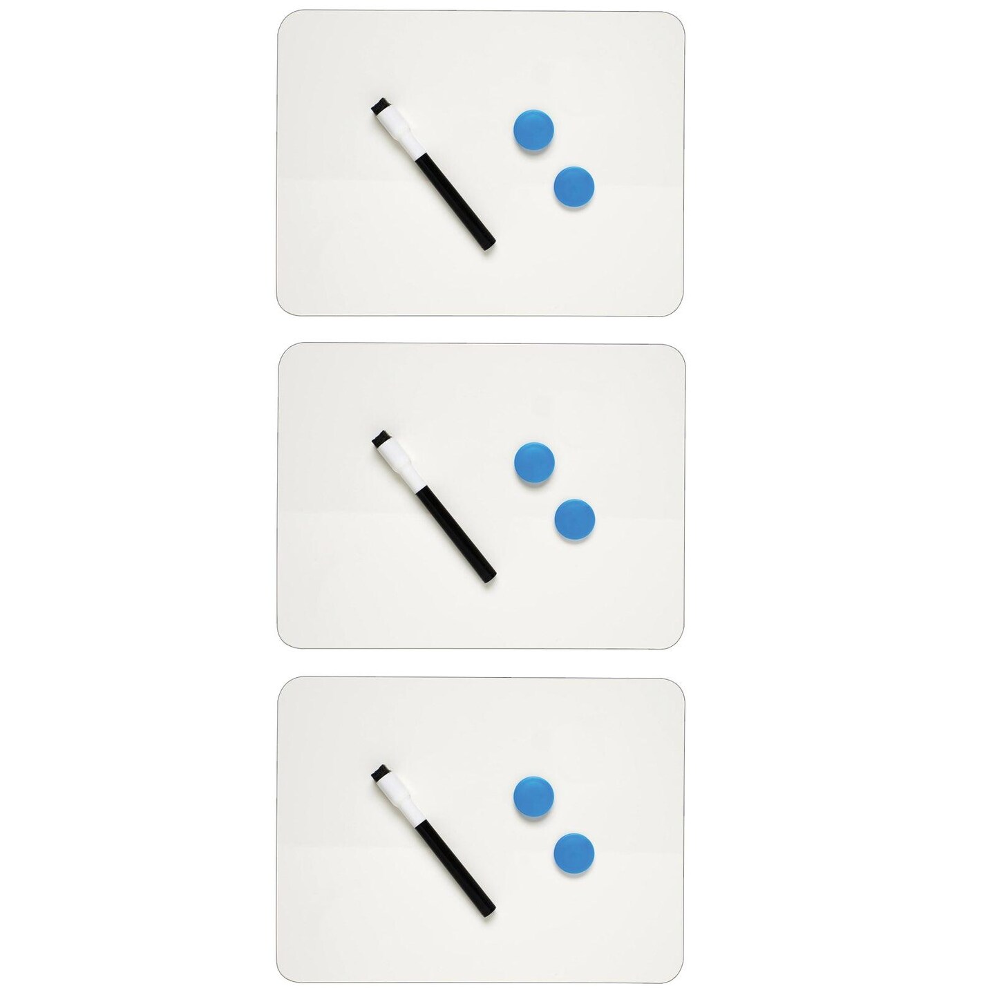 Magnetic Dry Erase Board, Two Sided, Plain/Plain, 9" x 12", Pack of 3
