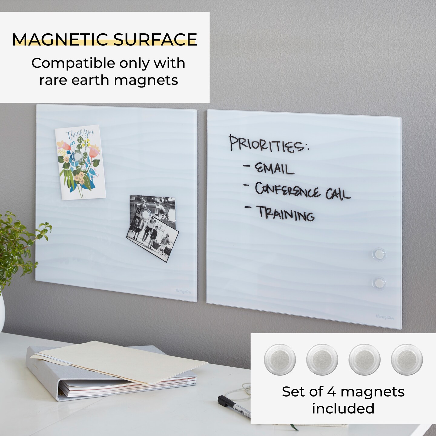 Magnetic Dry-Erase Glass Board with Magnets, 17.5in x 17.5in, Wall-Mounted Whiteboard, 2-Pack