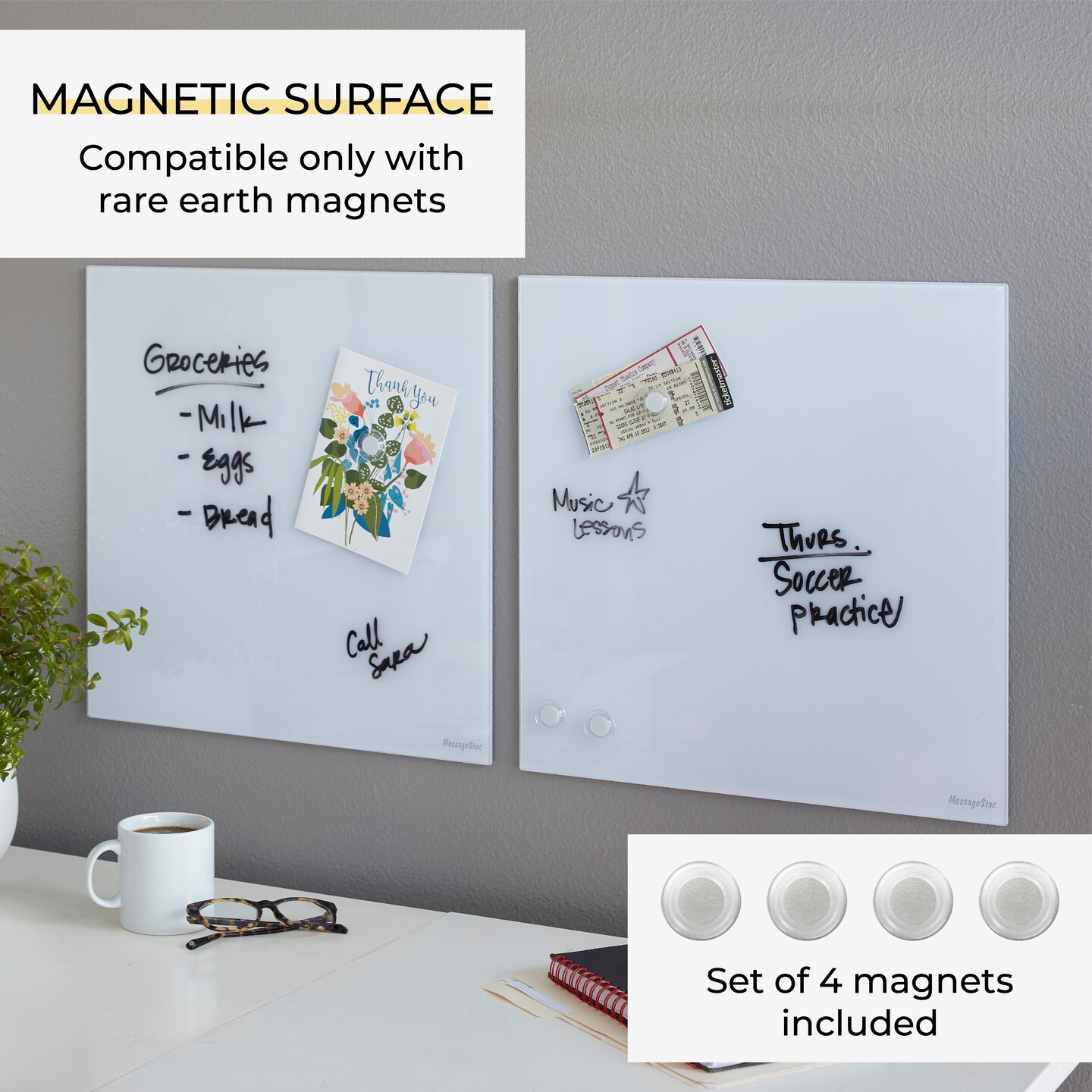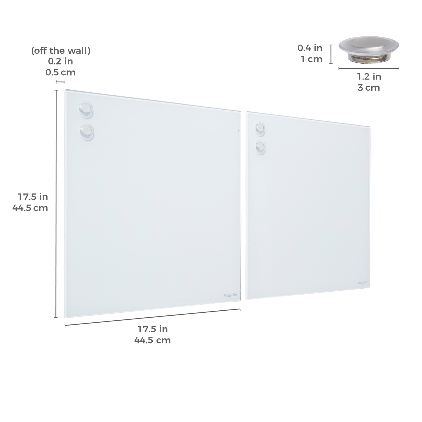 Magnetic Dry-Erase Glass Board with Magnets, 17.5in x 17.5in, Wall-Mounted Whiteboard, 2-Pack