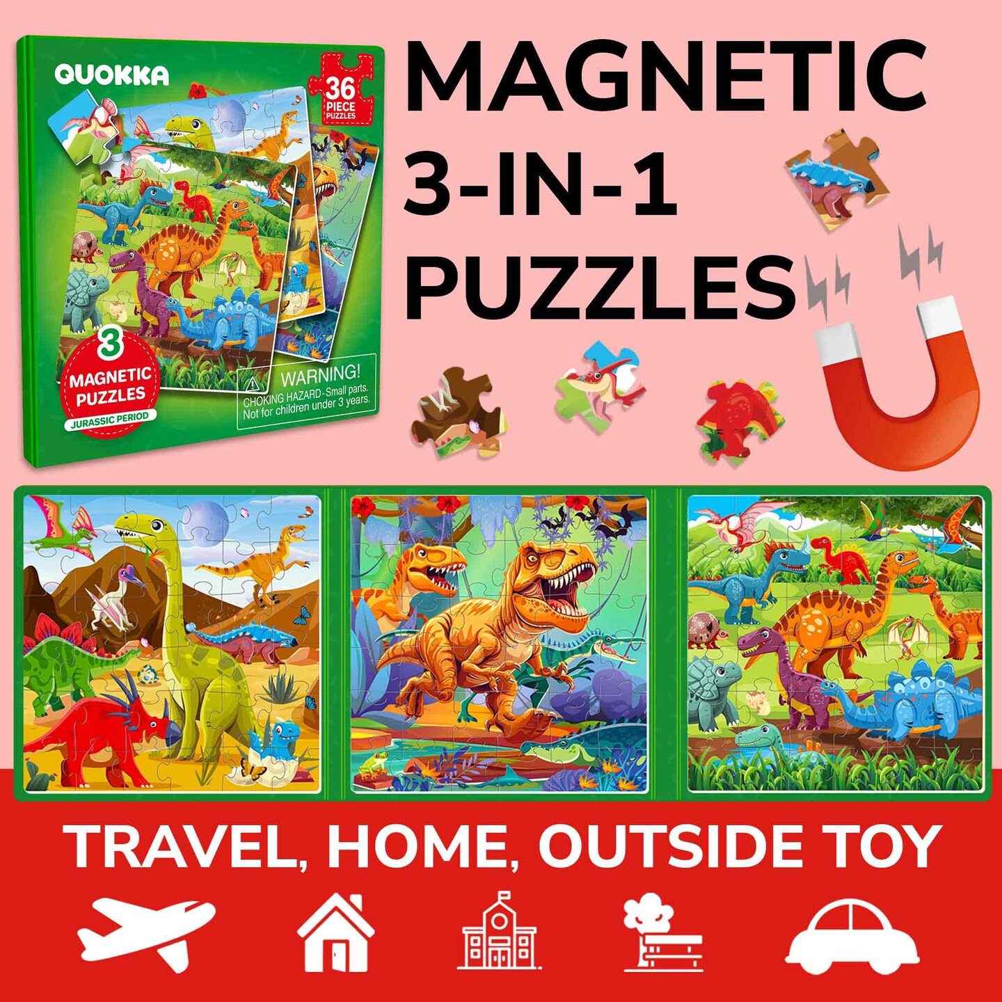 Magnetic Puzzles 3x36 Pcs Puzzles for Kids |Jurassic period