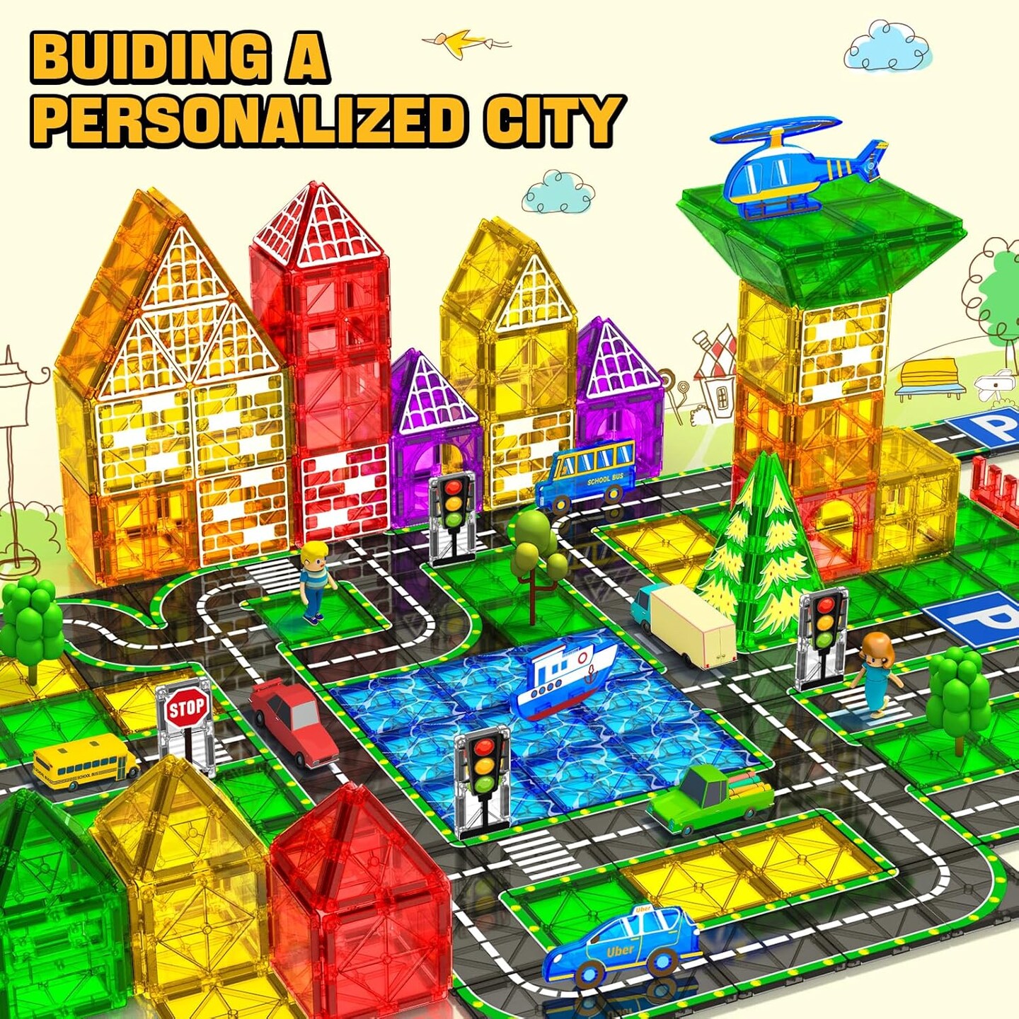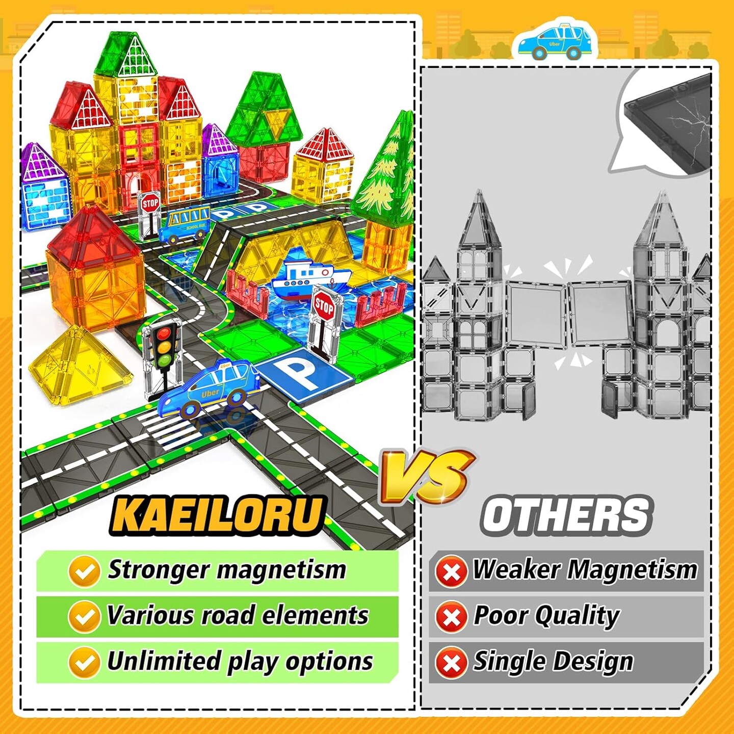 Magnetic Tiles Road Set with Car Magnet Building Tile Toys for Kids Ages 3-5 4-8 5-7 Magnetic Blocks Expansion Pack STEM Construction Toys for 3 Year Old Boy Girl Toddler Christmas Birthday Gift 42pcs