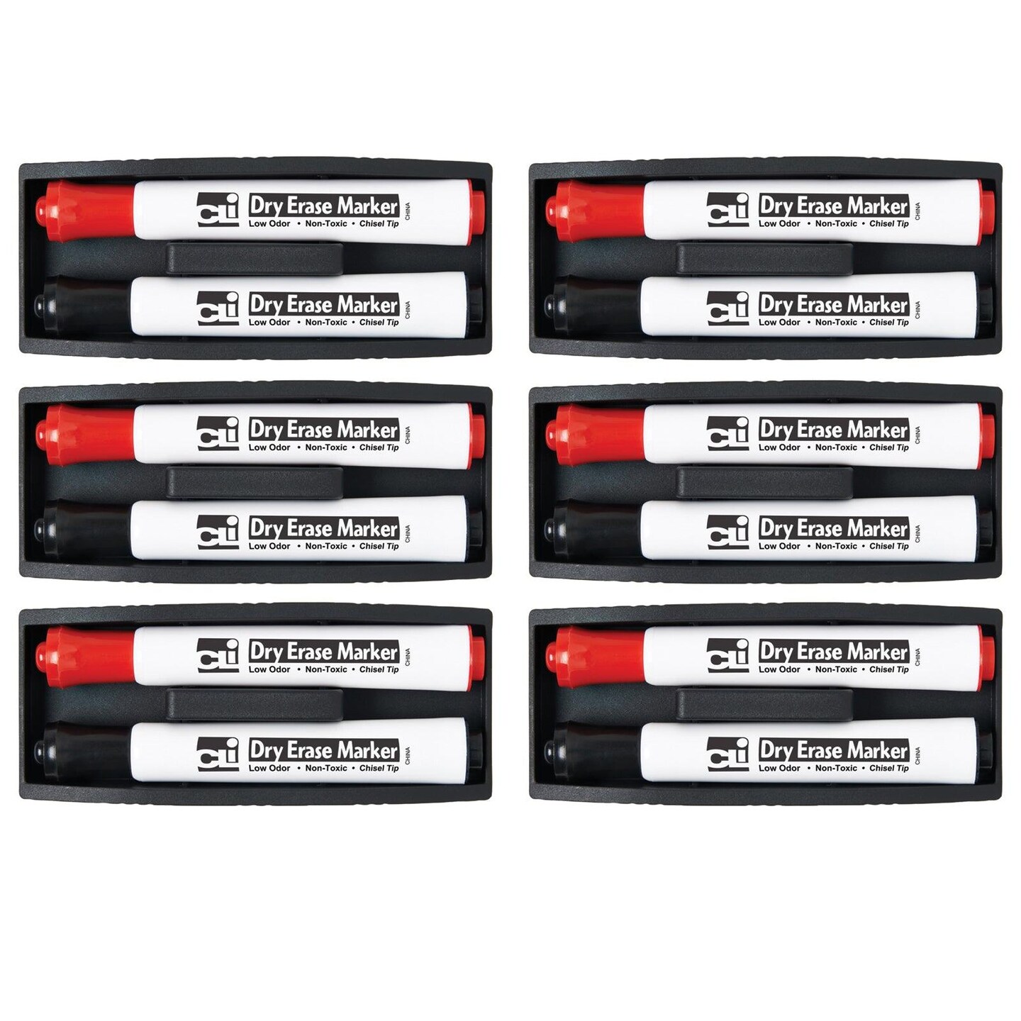 Magnetic Whiteboard Eraser with 2 Dry Erase Markers, Pack of 6