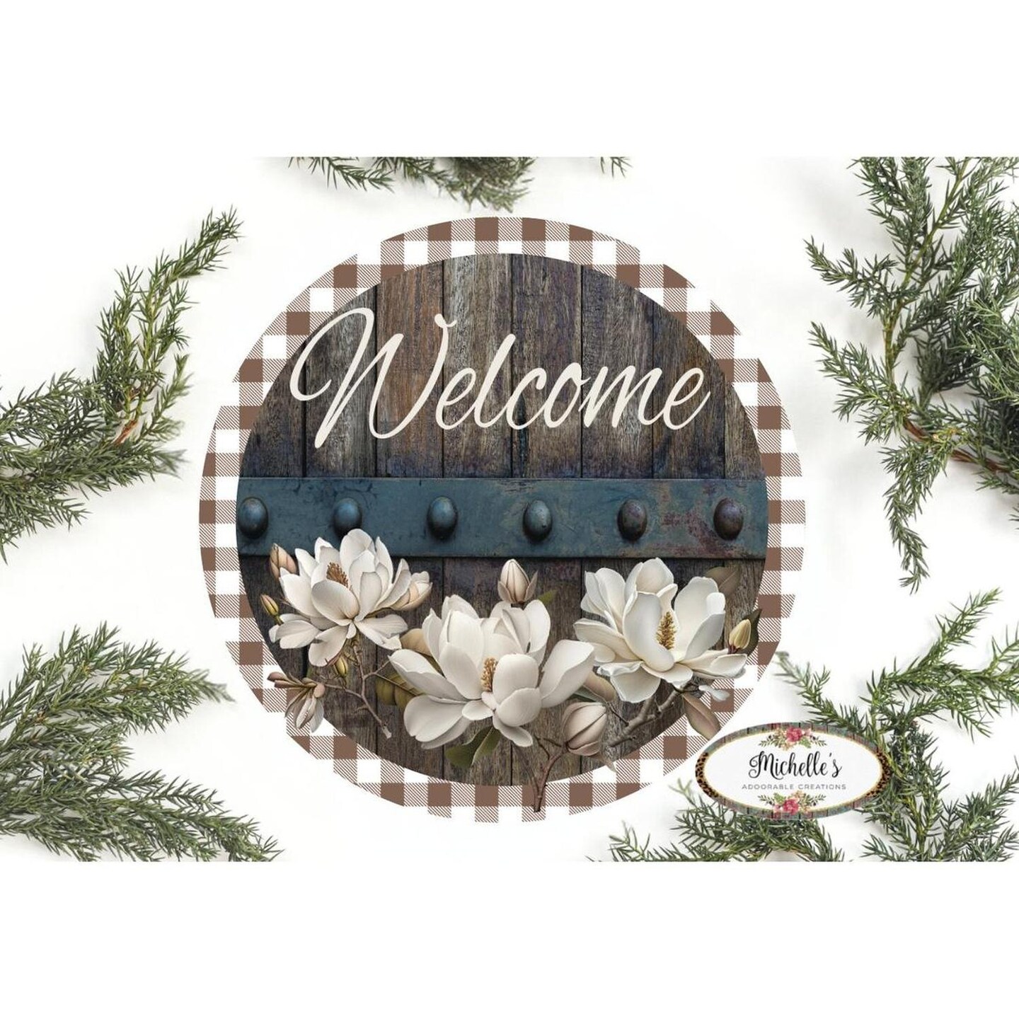 Magnolia Welcome Wood Round Sign