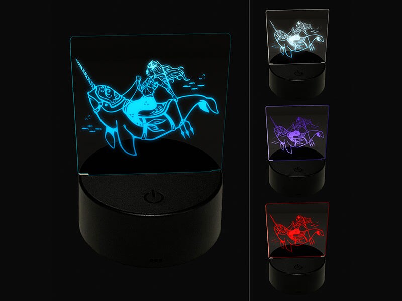 Majestic Mermaid Riding Narwhal 3D Illusion LED Night Light Sign Nightstand Desk Lamp