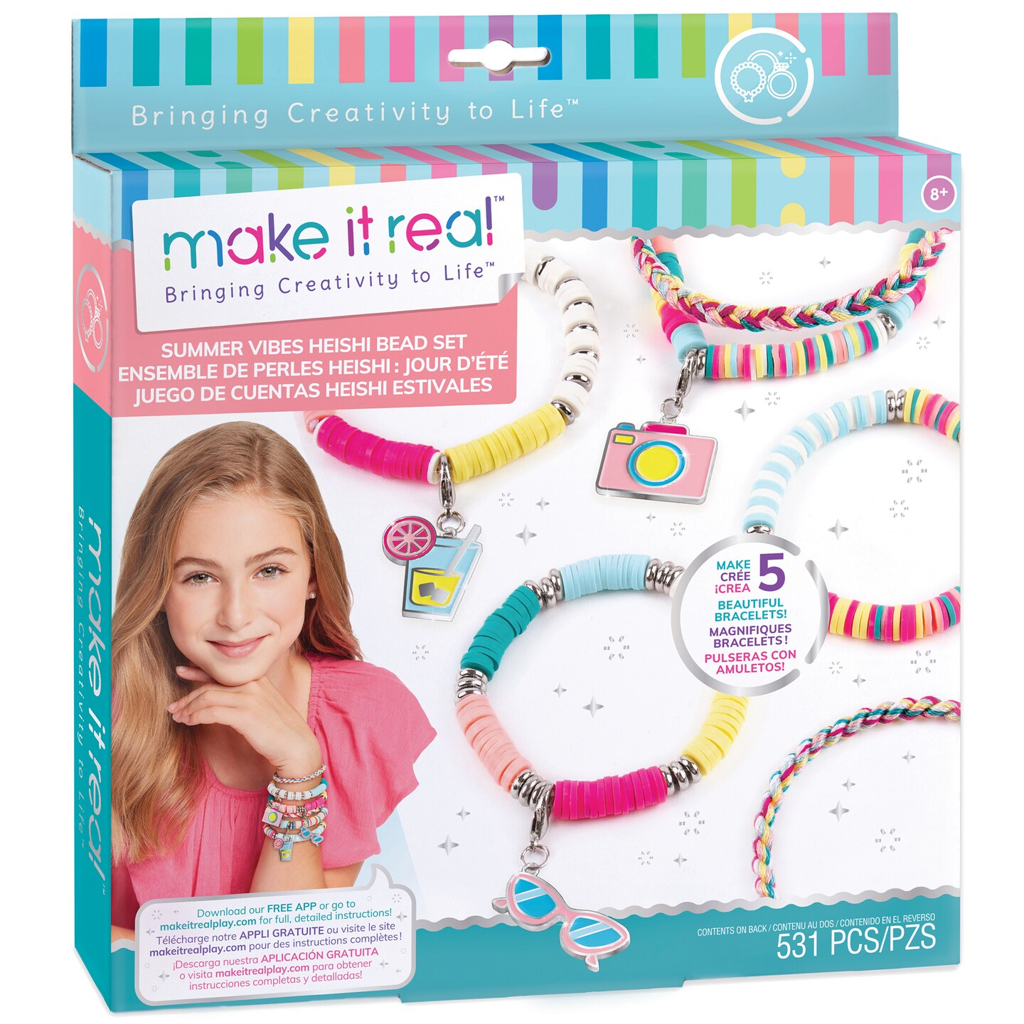 Make It Real Summer Vibes Heishi Bead Kit – DIY Cord Charm Bracelets, 531 Pieces with Tray – All-in-One Jewelry Craft Set for Girls & Tweens, Ages 8+